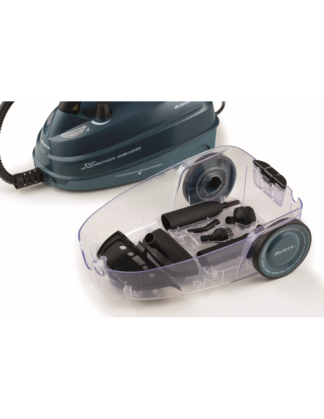 Uus teisaldatav aurupuhasti millel käepärane tarvikute sahtliga kohe põhja all. Tänu kuumaauru loomulikule jõule saata puhastada kõik majapidamispinnad, tagades maksimaalse hügieeni, ilma keemilisi puhastusvahendeid kasutamata: plaadid, klaaspinnad, parkett, marmor, vaibad. Lai lisavarustus võimaldab akende ja igat tüüpi pindade täpset puhastamist.