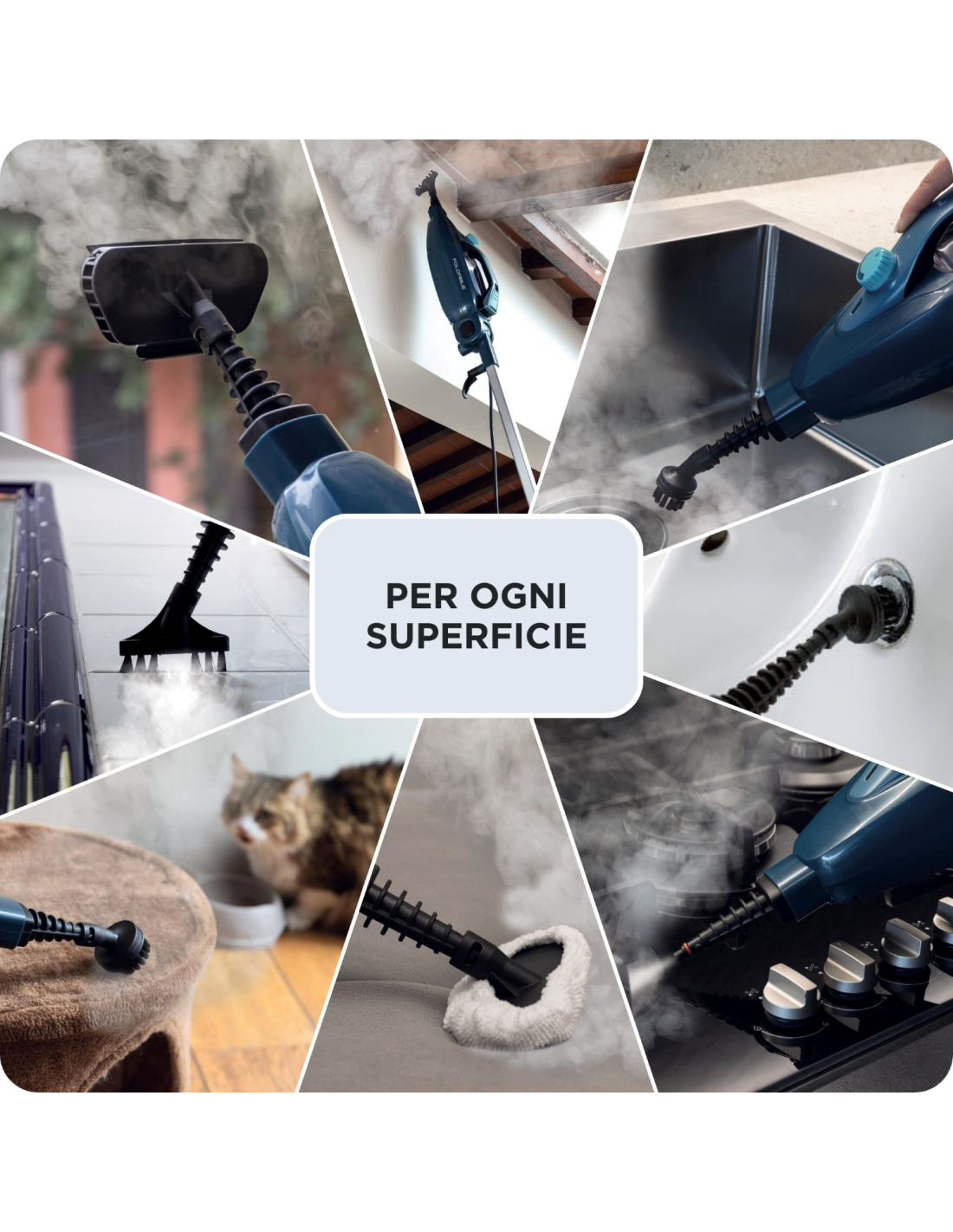 Aurumopp kümme ühes! Auruga põrandapuhasti, millest saab tänu tootele lisavarustusele praktiline multifunktsionaalne aurugeneraator, mis võimaldab teil puhastada erinevat tüüpi pindu ja eemaldada mikroobe ja baktereid ilma puhastusvahenditeta. Praktiline kasutada ja seda on lihtne hoiustada. Aurumopp kümme ühes on mitmekülgne. Toode sobib ideaalselt teie maja iga nurga põhjalikuks puhastamiseks: see puhastab vaibad ja põrandad, eemaldab pindadelt tugeva mustuse ja rasu, eemaldab vannitoas sadestunud pinnad, aitab puhastada kuivanud jäägid pliidiplaatidel, puhastab plaatide vahelised vuugid, puhastab varjatud nurgad ja värskendab kangad ja diivanid. See puhastab, eemaldab plekid kõikjal kiiresti ja lihtsalt. Kompaktne hoiustada, kokkupandav.