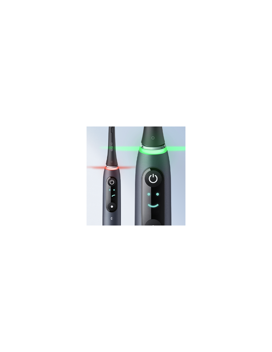 - Nutikas surveandur näitab punast tuld, kui harjad liiga tugevalt, ja rohelist, kui harjad täpselt õigesti.
