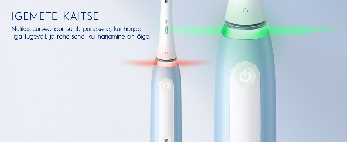 - Nutikas surveandur süttib punasena, kui harjad liiga tugevalt, ja rohelisena, kui harjamine on õige.