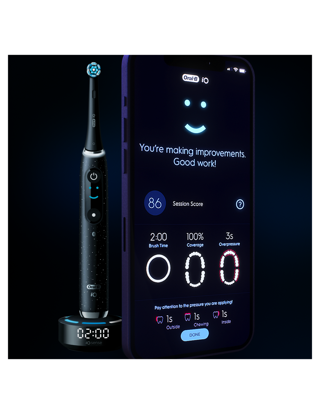 - iO™-s kui Oral-B parimas harjamistehnoloogias on mikrovibratsiooniga harjaste õrn energia ühendatud hambaarstide soovitusel loodud Oral-B ümara harjapeaga, mida käitab esimene omalaadne sujuv magnetajam.
