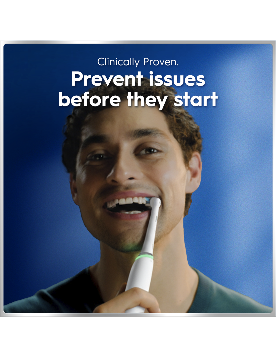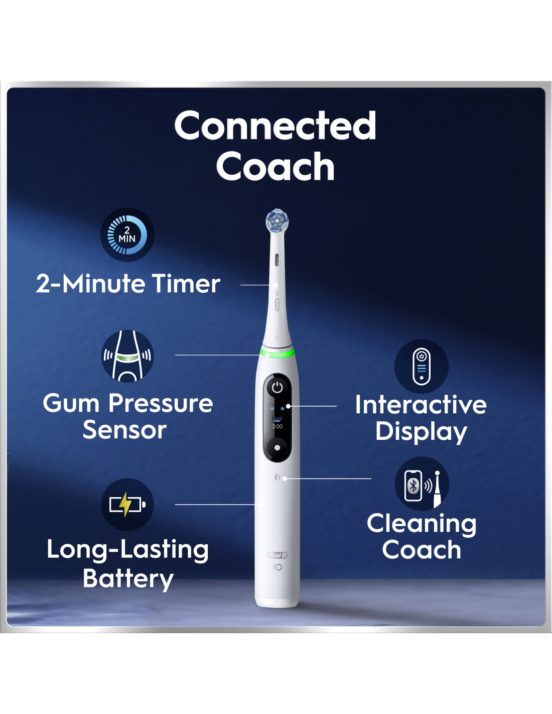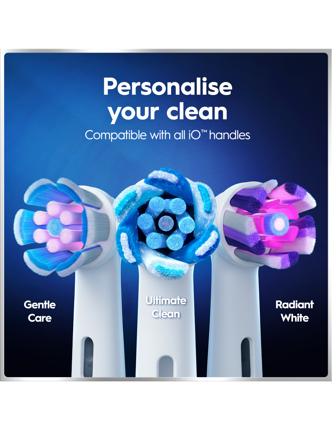 iO™-s kui Oral-B parimas harjamistehnoloogias on mikrovibratsiooniga harjaste õrn energia ühendatud hambaarstide soovitusel loodud Oral-B ümara harjapeaga, mida käitab esimene omalaadne sujuv magnetajam.