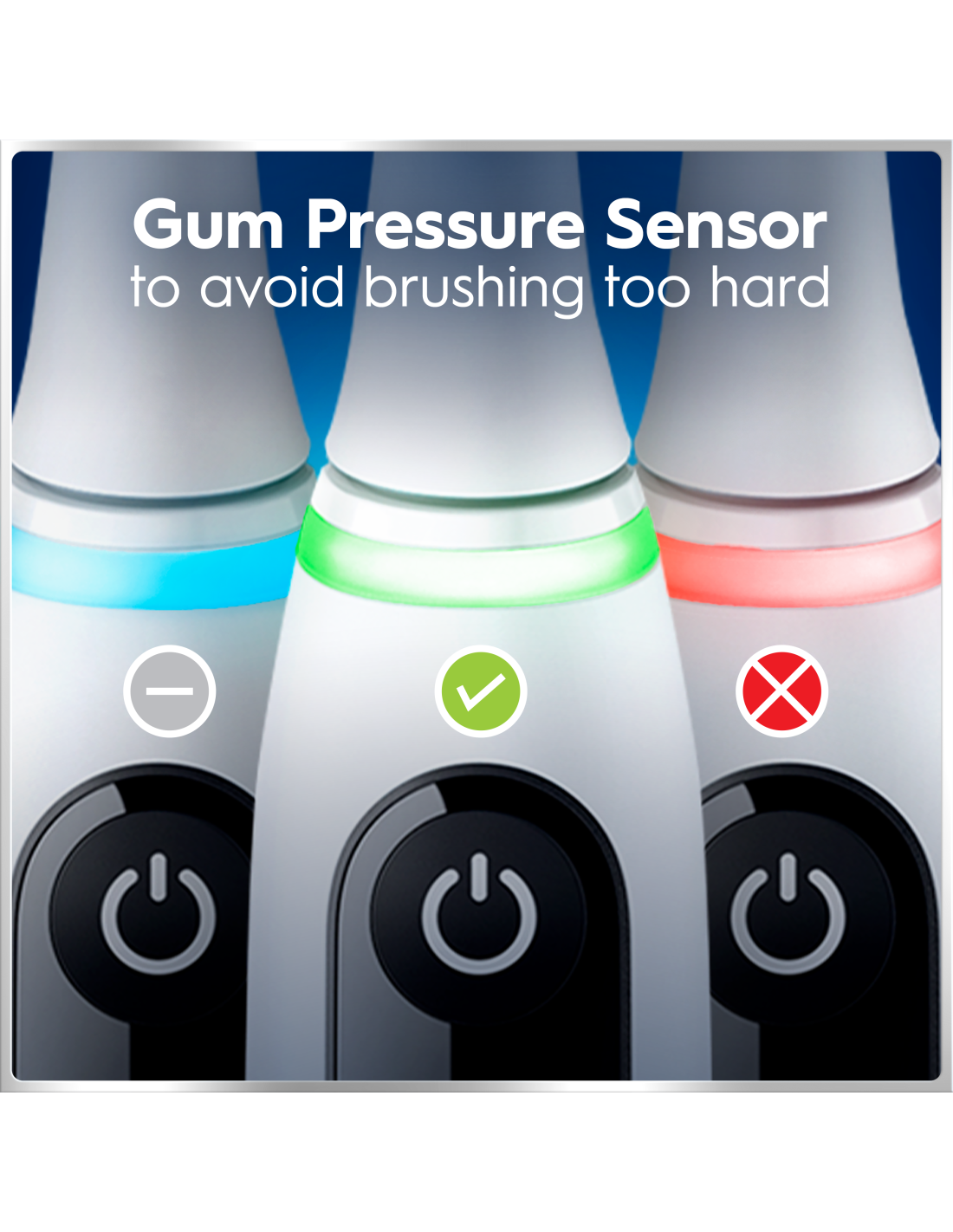 Nutikas surveandur näitab punast tuld, kui harjad liiga tugevalt, ja rohelist, kui harjad täpselt õigesti.
