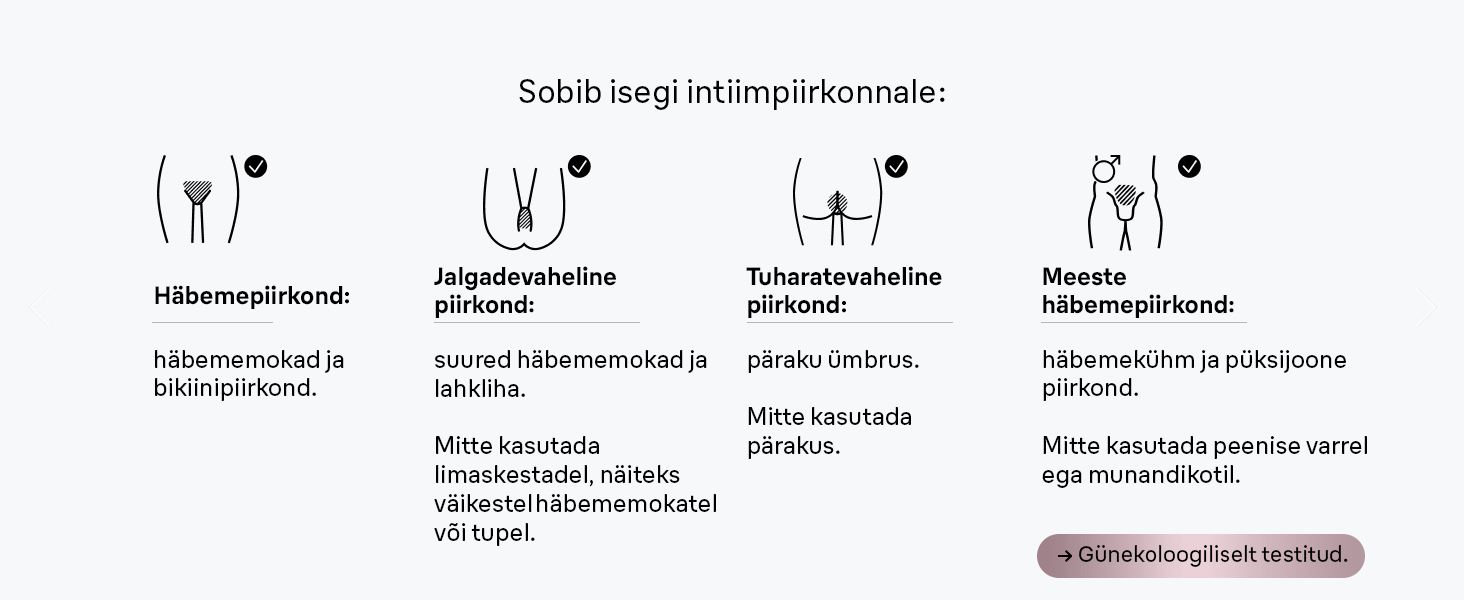¹Jalad – üla- ja alaosa, kaenlaalused, bikiinipiirkond, ülahuul