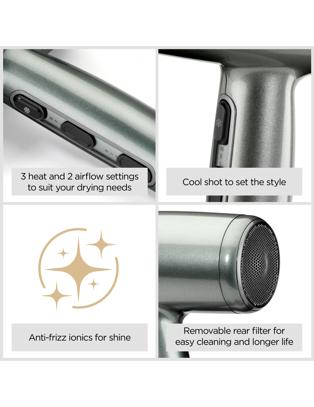 BaByliss D581E föön ühendab endas võimsa tehnoloogia ja läbimõeldud disaini, et tagada tõhus ja meeldiv juuste kuivatamine. Nominaalvõimsusega 2100 W pakub see föön kiiret kuivamist ja mitmekülgseid viimistlusvõimalusi. Kolm kuumuse ja kaks kiiruse seadistust võimaldavad kohandada kasutust erinevatele juuksetüüpidele ja vajadustele. Integreeritud ioontehnoloogia vähendab säbrulisust ja annab sileda, läikiva tulemuse. Eemaldatav filter muudab puhastamise ja hooldamise lihtsaks, samas kui külma õhu nupp aitab soengut fikseerida. Praktiline riputusaas ja 1,95 meetri pikkune juhe muudavad fööni kasutajasõbralikuks ja paindlikuks.