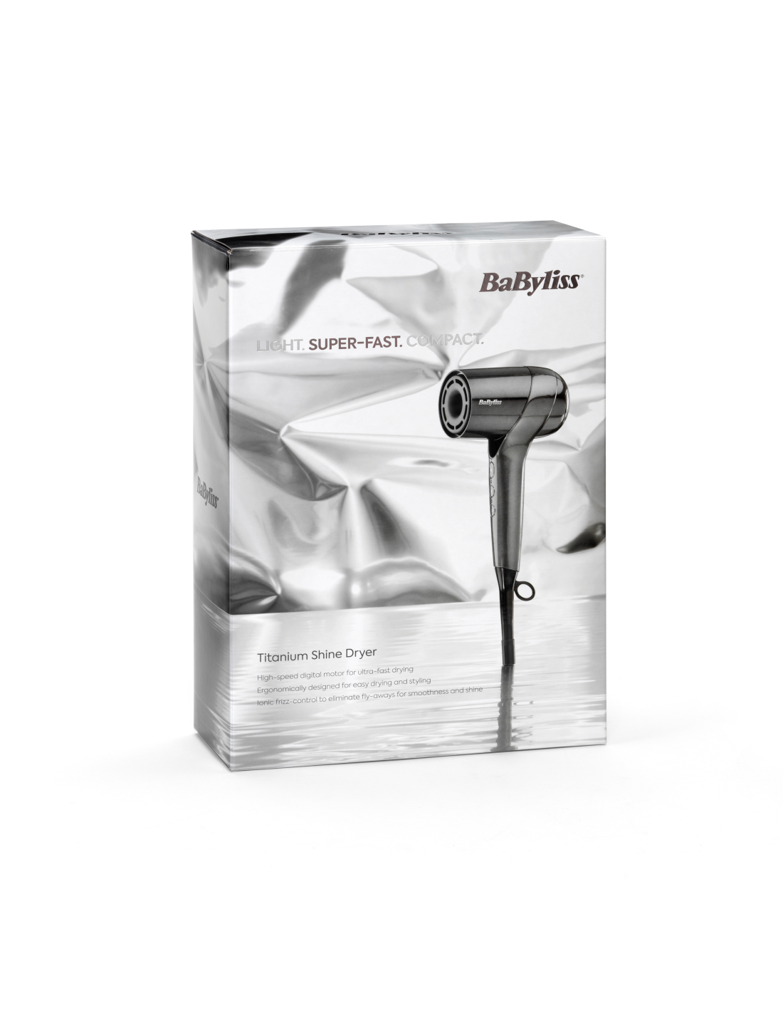 Titanium Shine professionaalse tasemega föön on kerge ja kompaktne, ent varustatud võimsa digitaalmootoriga, mis tagab ülikiire kuivamise. Suunatud õhuvool võimaldab täpset ja kiiret töötlemist, vähendades viimistluseks kuluvat aega ilma tulemusi ohverdamata. Tänu ergonoomilisele ja tasakaalustatud kujule on seda mugav käes hoida, muutes juuste viimistlemise lihtsaks ja sujuvaks. Kuulub BaByliss Titanium Shine kollektsiooni.