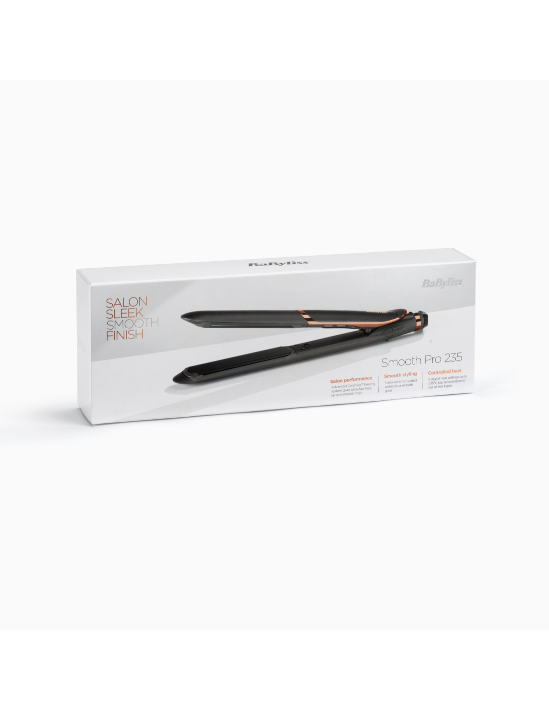 BaByliss Smooth Pro 235 sirgendaja annab sujuvad, sileed, kohevuseta tulemused, kas saavutakse sujuva libisemise nano-keraamilsete plaatide ja ioontehnoloogia abil.