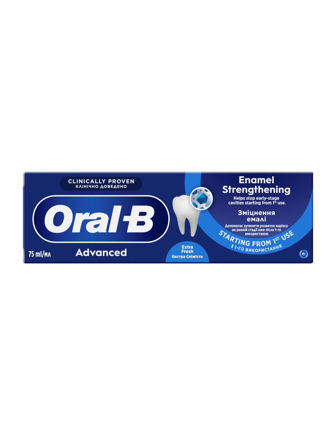 Hambapasta Oral-B Advanced Enamel Strenghtening Clean Mint on kliiniliselt tõestatud ja aitab peatada varajases staadiumis hambaaugud alates 1. kasutuskorrast. Ainulaadne bakterivastane tehnoloogia tinafluoriidi kompleksiga loob mikrotihendava kaitsekihi, mis kaitseb mineraalainete kao eest isegi harjamiste vahel ja taastab aktiivselt hammaste tiheduse. Igapäevane hambapasta.