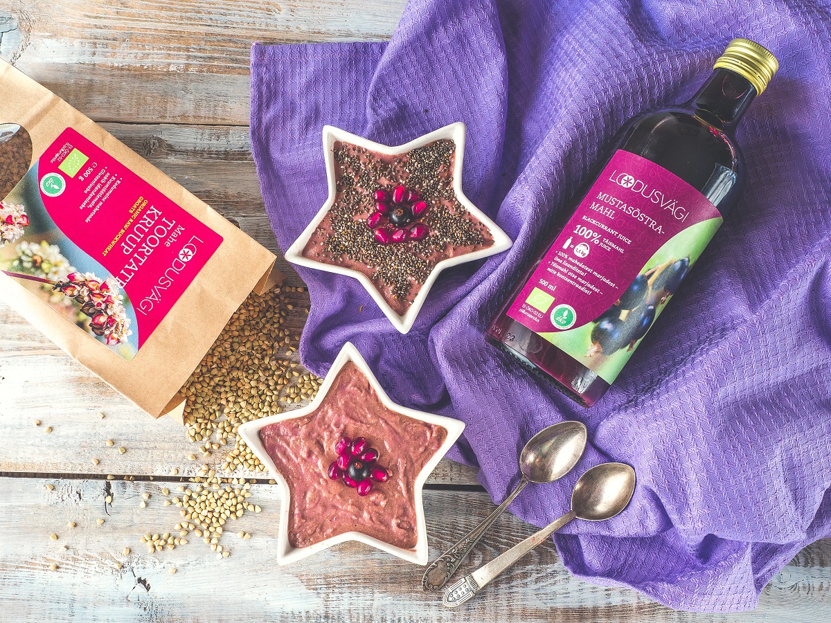 - 1 dl Loodusväe mustasõstramahla (sobivad ka teised marjamahlad - mustikamahl ja pohlamahl)