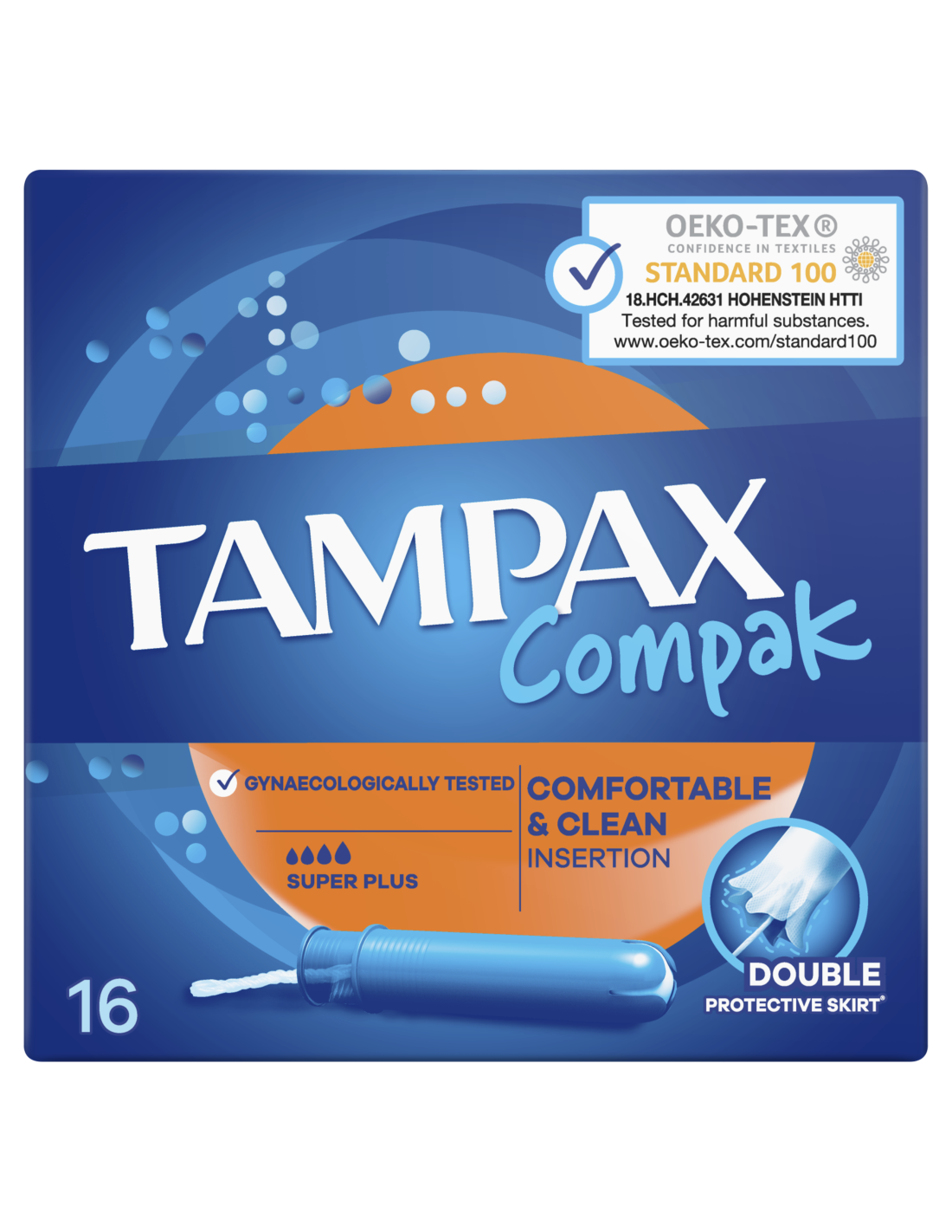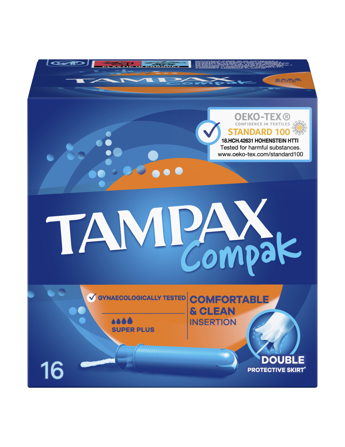 Tampoonid Tampax Compak Super Plus pakuvad sulle diskreetset kaitset tugeva vereeritusega päevadel. Tampax Compak tampoonid pakuvad päevade ajal kaitset väga praktilisel viisil. Need ei sisalda lõhna- ega värvaineid. Tampax Compaki tampoonide juurde kuulub kompaktne plastaplikaator, millel on sujuvaks sisestamiseks ümar ots. Imavad sooned juhivad vedeliku tampooni sisemusse ja kaitsev topeltääris aitab takistada lekkimist – et sinu päevad oleksid muretud. Tampax Compaki tampoone on günekoloogiliselt testitud. Neid on Oeko-Tex Standard 100 poolt sõltumaltult katsetatud kahjulike ainete sisalduse suhtes. Kindel, leketeta kaitse võimaldab teha, mida iganes soovid. Tampax Compaki tampoonid rohke vooluse imamiseks. Proovi tampooni Tampax Pearl Compak – parimat mugavust ja kaitset Tampaxi tootevalikust. Lisateavet Tampaxi toodete kohta leiad Tampaxi veebisaidilt.