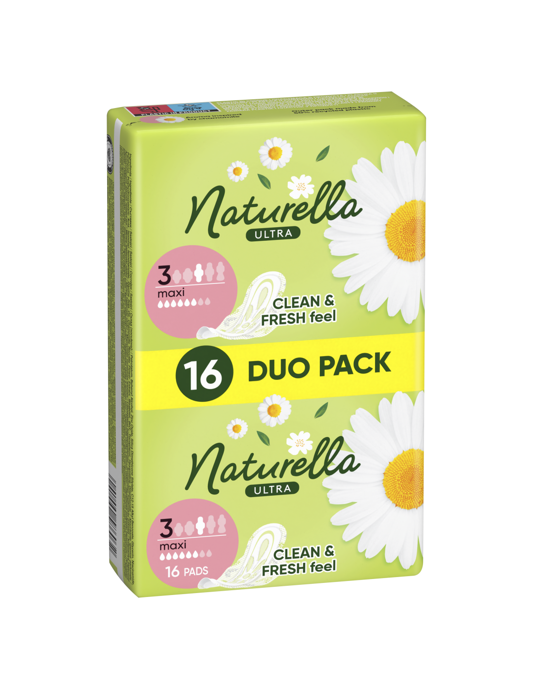 Naturella Ultra Maxi Size 3 tiibadega hügieenisidemete imav sisu on valmistatud kahekordse toimega kiududest, mis on imavad ja säilitavad hügieenisideme kuju, et tunneksid end ükskõik milliste liigutuste korral mugavalt. Naturella Ultra hügieenisidemed on mugavuse ja diskreetsuse tagamiseks õhukesed ning tagavad pehmuse sinu intiimpiirkonna naha eest hoolitsemisel. See on ainus naiste hügieenitoode, mis sisaldab kuiva ihupiima, millel on tõestatult nahaärritust ennetav toime. Naturella Ultra Maxi hügieenisidemed on pikemad kui tavalised hügieenisidemed. Kui soovid ööseks paremat hooldust ja kaitset, proovi pikema tagaosaga sidemeid Naturella Ultra Night suurus 4. Suurem paremaks kaitsmiseks.