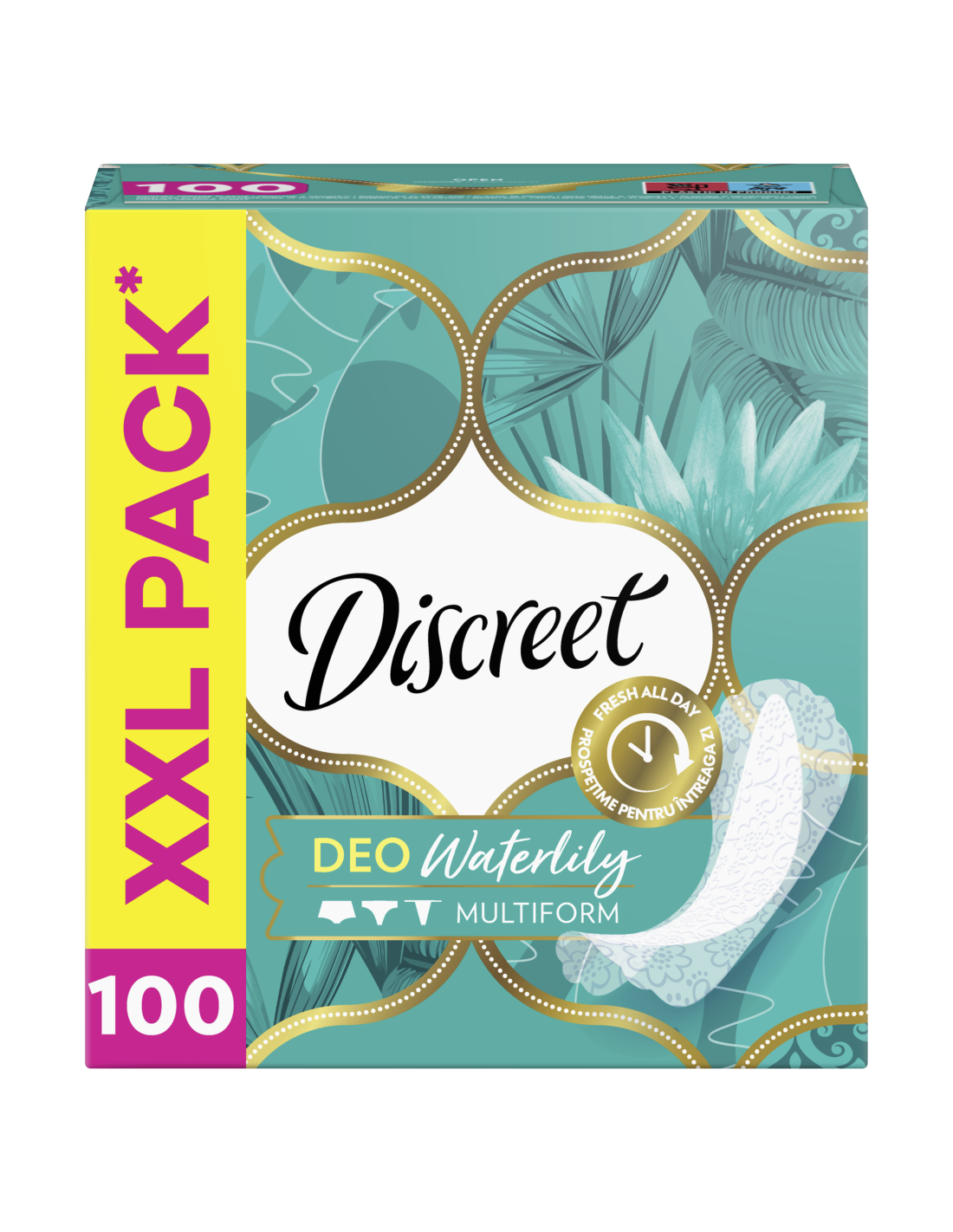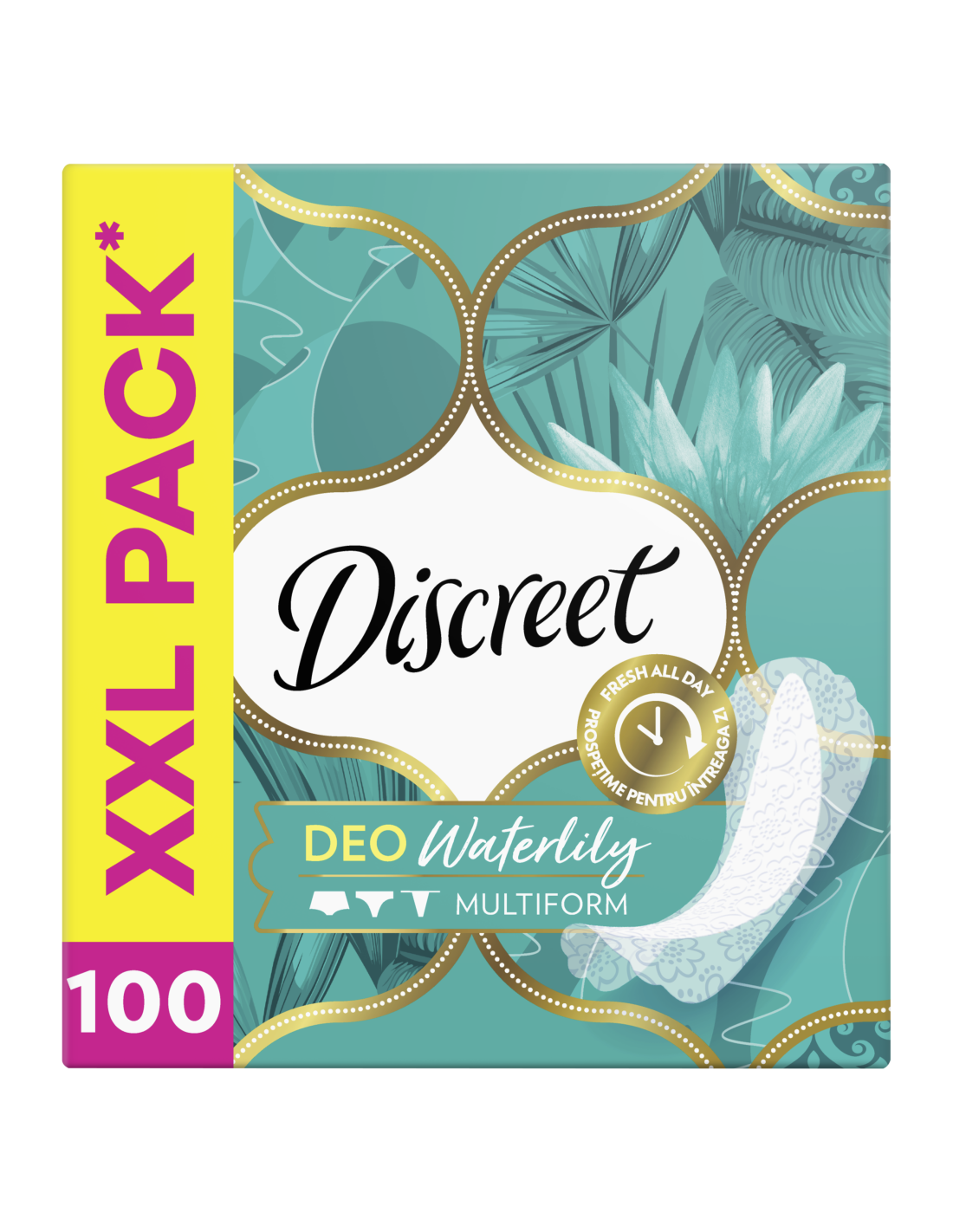 Olgu sinu stiil milline tahes, Discreet Multiform Waterlily pesukaitsmed aitavad sul ennast kaunina tunda! Need pesukaitsmed lasevad intiimpiirkonna nahal vabalt hingata, pakkudes värskust ja mugavust kuni 12 tunniks. Need on nii õhukesed, et sa isegi ei tunne neid, ning tänu vormitavusele sobivad ka igas stiilis püksikutesse. Waterlily signatuurlõhn lõhnab nii värskelt ja naiselikult. Sõltumata sellest, mida sinu päev toob, panevad need pesukaitsmed sind rokkima!