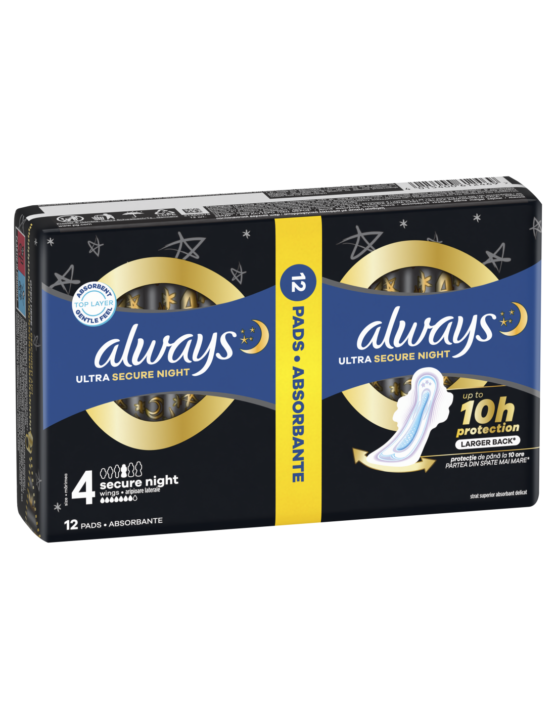 Ära lepi magades vähema kui hea unega tänu kuni 10-tunnisele kaitsele: tiivakeste ja imava õrna pealiskihiga hügieenisidemel ALWAYS Ultra Secure Night (suurus 4) on kolm kaitsvat omadust, nii et sa ei pea lekete kontrollimiseks üles ärkama ega sidet poole öö pealt välja vahetama. 60% suurem tagaosa (võrreldes hügieenisidemega Always Ultra Normal, suurus 1) ja LeakGuard-tehnoloogia lukustavad vedeliku sidemesse ning aitavad vältida menstruatsiooni ajal öiseid lekkeid ja lõhnu. Always Ultra hügieenisidemed on saanud nahatervise organisatsiooni Skin Health Alliance dermatoloogilise heakskiidu.