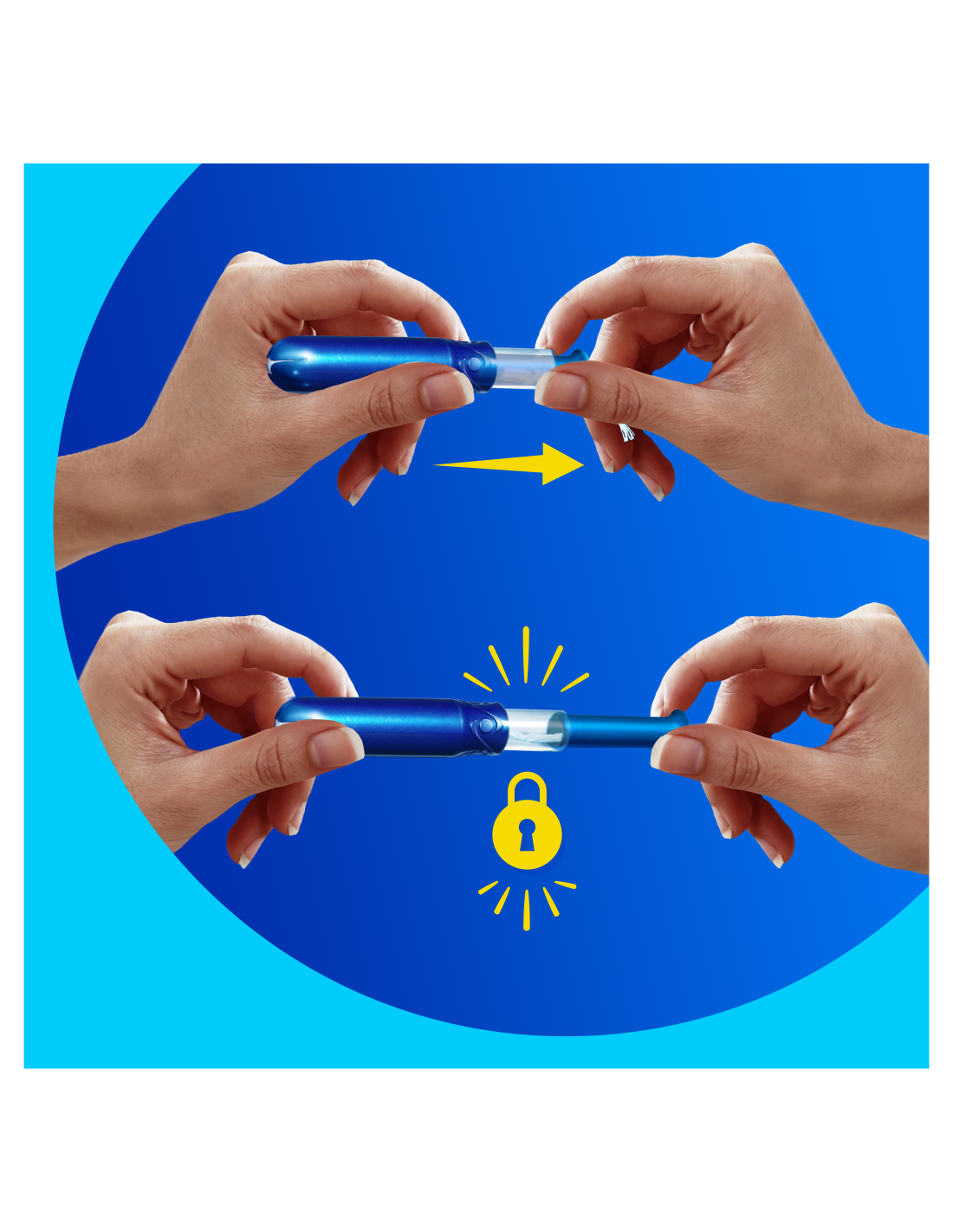 • Libisemiskindla pinna ja ümara otsaga SmoothTouchi kompaktse aplikaatori abil on tampooni kerge ja mugav sisestada.