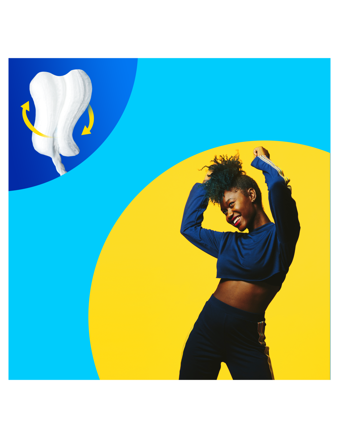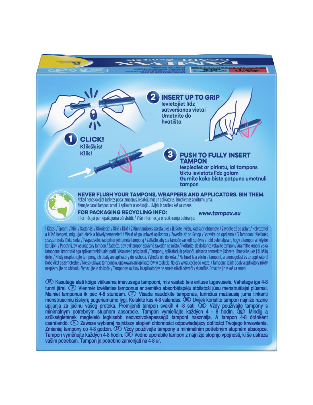 • Tampaxi mugavuse, kaitse ja diskreetsuse parim kombinatsioon.