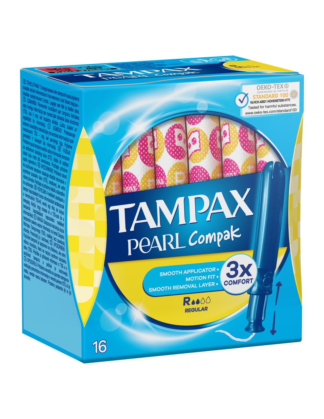 Tampax Pearl Compaki tampoonid on Tampaxi parimad tampoonid, mis pakuvad mugavust, kaitset ja diskreetsust. Need ei sisalda lõhnaaineid. Tampax Pearl Compaki tampoonidel on kompaktne ja diskreetne, mugavat sisestamist võimaldav sileda pinna ja ümara otsaga plastaplikaator. Aplikaatori reljeefse mustriga libisemiskindel pind püsib kindlalt sõrmede vahel ning seda on kerge hoida ja paika asetada. Tampax Pearl Compaki valmistamisel on kasutatud MotionFit-tehnoloogiat, mis laseb tampoonil sinu ainulaadse kehakujuga sobitumiseks õrnalt paisuda. Lisakaitset pakub punutud LeakGuard lekkekaitse, mis aitab lekked peatada juba tekkekohas. Tampax Pearl Compakil on julged värvilised ümbrised, mis taluvad käekotis hoidmist ning on lihtsalt ja vaikselt avatavad, tagades seega täieliku diskreetsuse. Tampax Pearl Compak Regular on Tampaxi parim tavapärase imavusega tampoon. Tampax Pearl Compaki tampoone on günekoloogiliselt testitud. Oeko-Tex on eraldi testinud ka kahjulike ainete sisaldust nendes.  Lisateavet Tampaxi toodete kohta leiad Tampaxi veebisaidilt.
