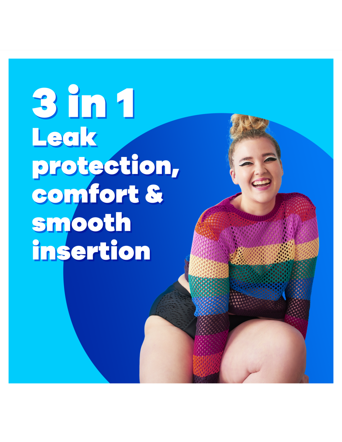 • Tampaxi mugavuse, kaitse ja diskreetsuse parim kombinatsioon.
