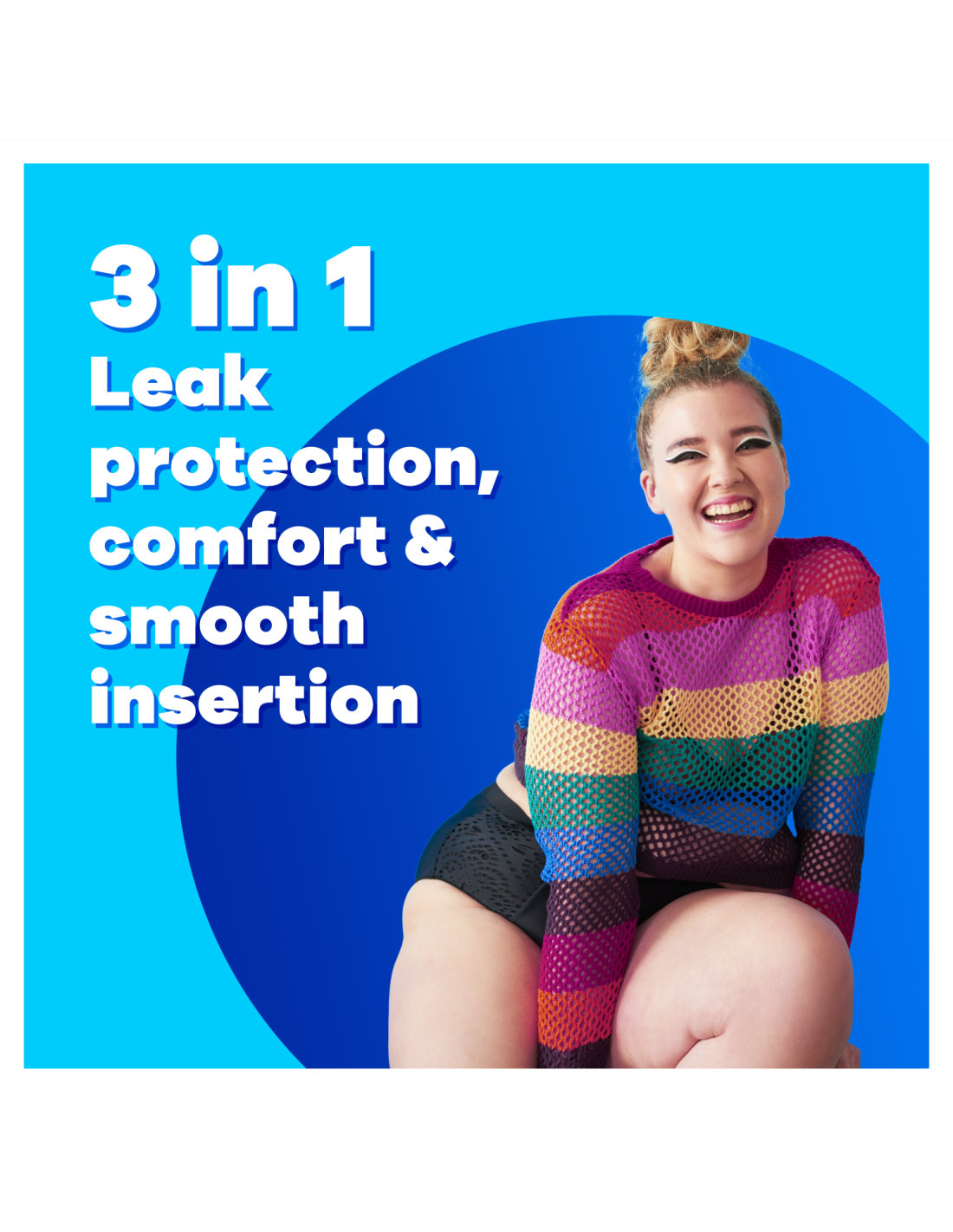 • Tampaxi mugavuse, kaitse ja diskreetsuse parim kombinatsioon.