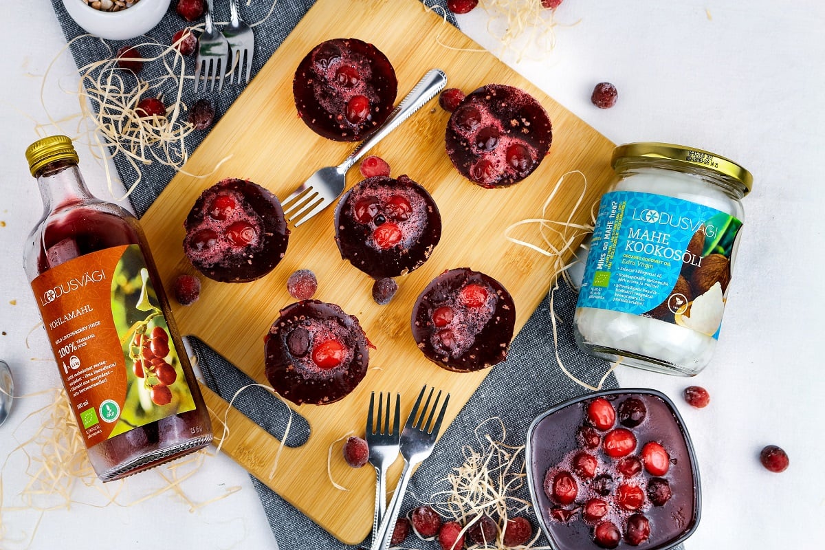 Võta kapist tahenenud piparkoogipõhjad, aseta peale jõhvikad ning vala üle mahla-želatiini seguga.