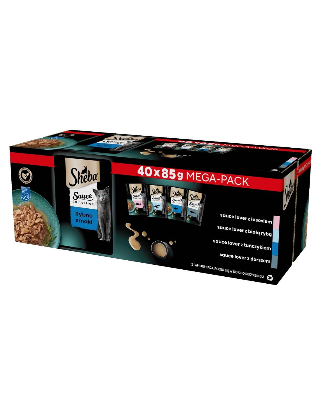 Sheba® Sauce Collection Fish Flavors on hoolikalt valitud õrnade lihatükkide segu maitsvas kastmes. Nelja maitsevariandiga eine sisaldab lõhe, valge kala, tuuni ja tursa tükke - selliseid maitseid hindavad ka kõige nõudlikumad kassid.