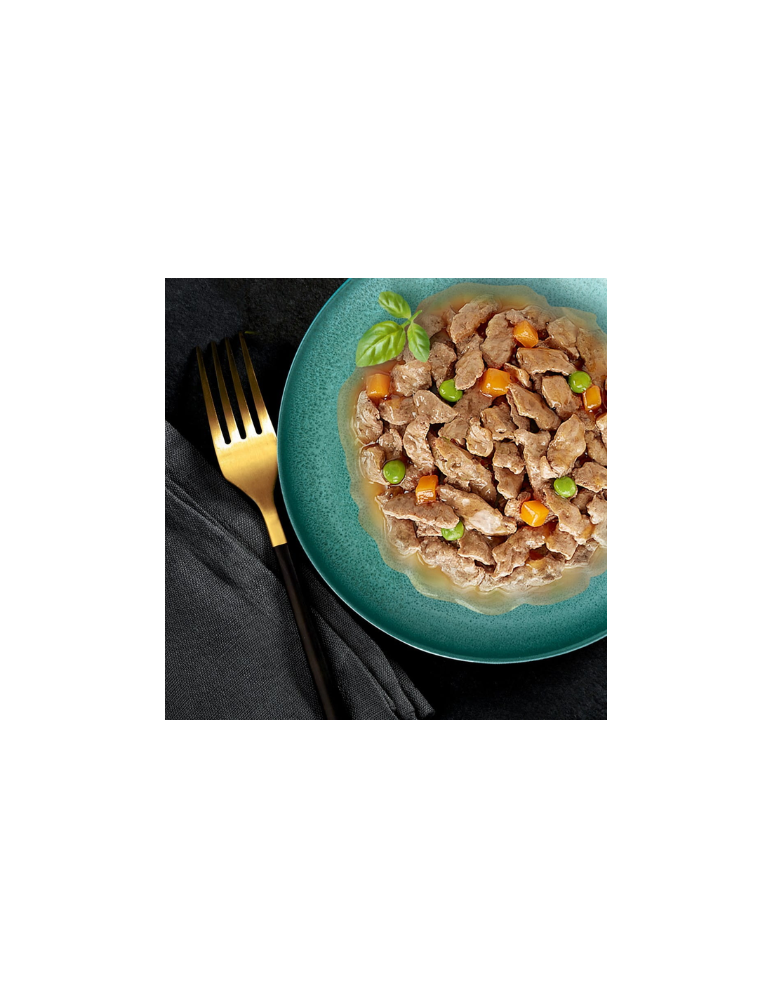 Koostis: liha ja loomse päritoluga derivaadid* (94% looduslikku päritolu; sealhulgas 4% linnuliha tükkides**), köögiviljad* (sealhulgas 0,6% kuivatatud porgand, mis vastab 4,5% sisaldusele), mineraalid, pärm*, suhkrud.