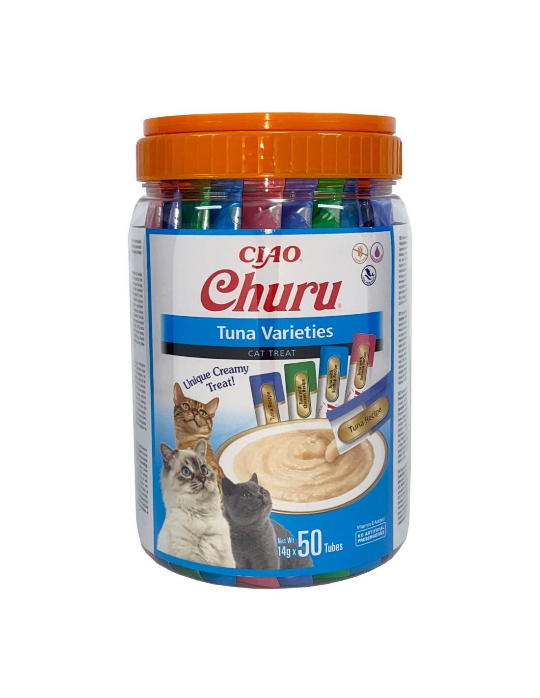 Churu® muudab suupistete aja kasside jaoks lõbusaks. Need maitsvad ja tervislikud maiused on kergesti avatavates pakendites, mida teie kass armastab lakkuda! Need uskumatult maitsvad sametised kastmed, mis on mõeldud käsitsi söötmiseks, on valmistatud kõrgeima kvaliteediga inimkõlbulikest koostisosadest. Churu on madala kalorsusega, teravilja- ja säilitusainetevaba ning selle valmistamisel kasutatakse hoolikalt jälgitud farmides looduslikult kasvatatud vabalt peetavate kanade ja jätkusuutlikult püütud, delfiinidele ohutu süvamere tuunikala.