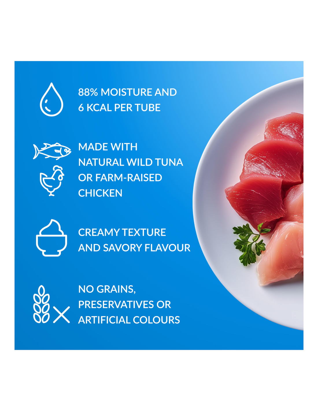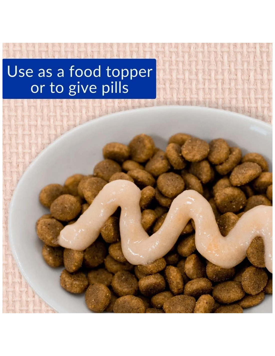 Spetsiaalselt disainitud pakend võimaldab sööta kassi otse käest. Avage tuub ja pigistage õrnalt – kass võib maiust lakkuda otse või pigistage sisu kaussi.