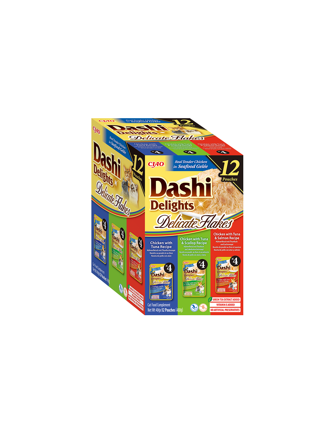 Dashi Delightes – siidine puljong sametise Dashi puljongina kanatükkidega ja Dashi Delightes pehmed helbed, mis on pehmete želeetaoliste kanatükkidega täis Dashi maitset, saadaval 12 x 40 g pakendites!