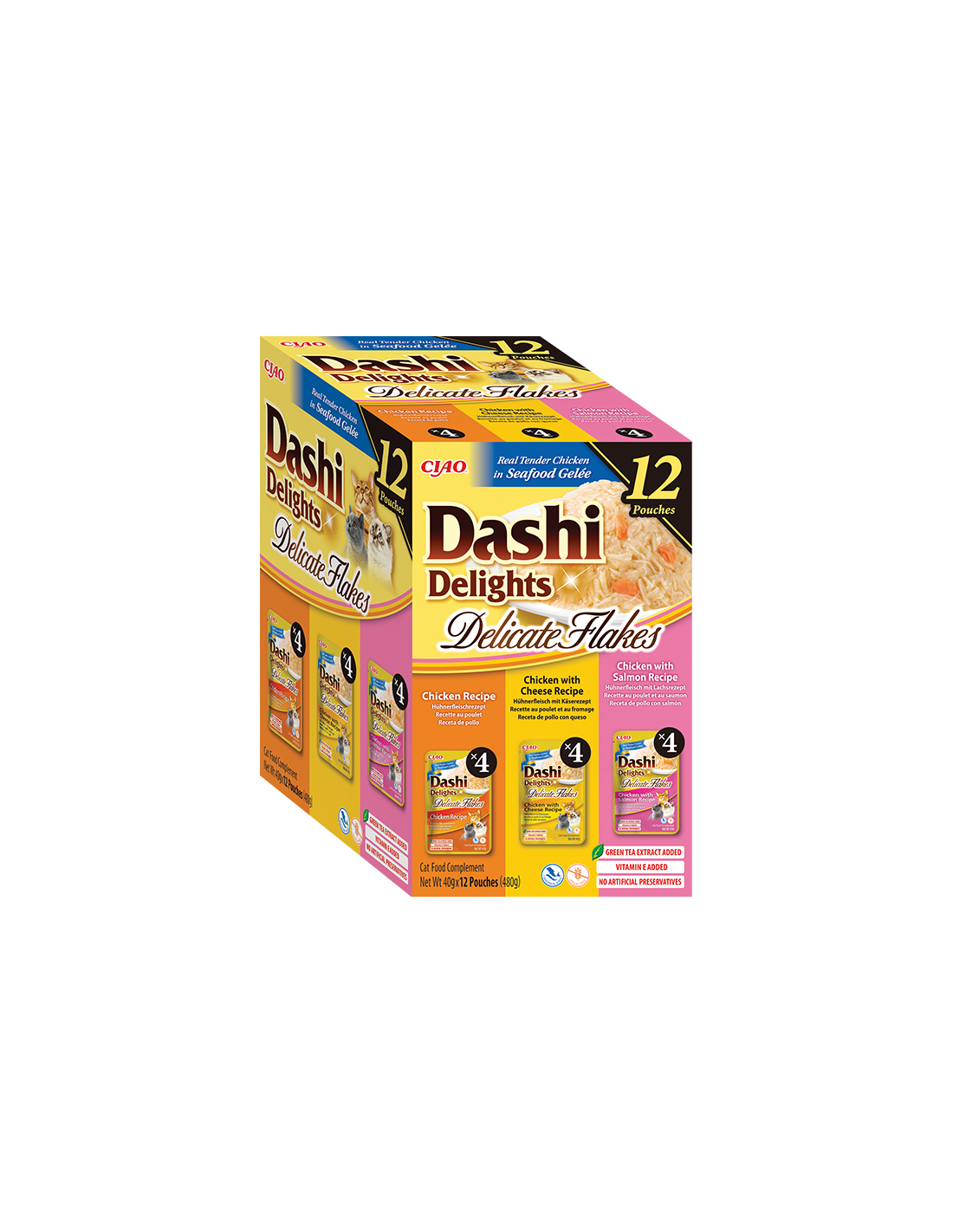 Dashi Delightes – siidine puljong sametise Dashi puljongina kanatükkidega ja Dashi Delightes pehmed helbed, mis on pehmete želeetaoliste kanatükkidega täis Dashi maitset, saadaval 12 x 40 g pakendites!