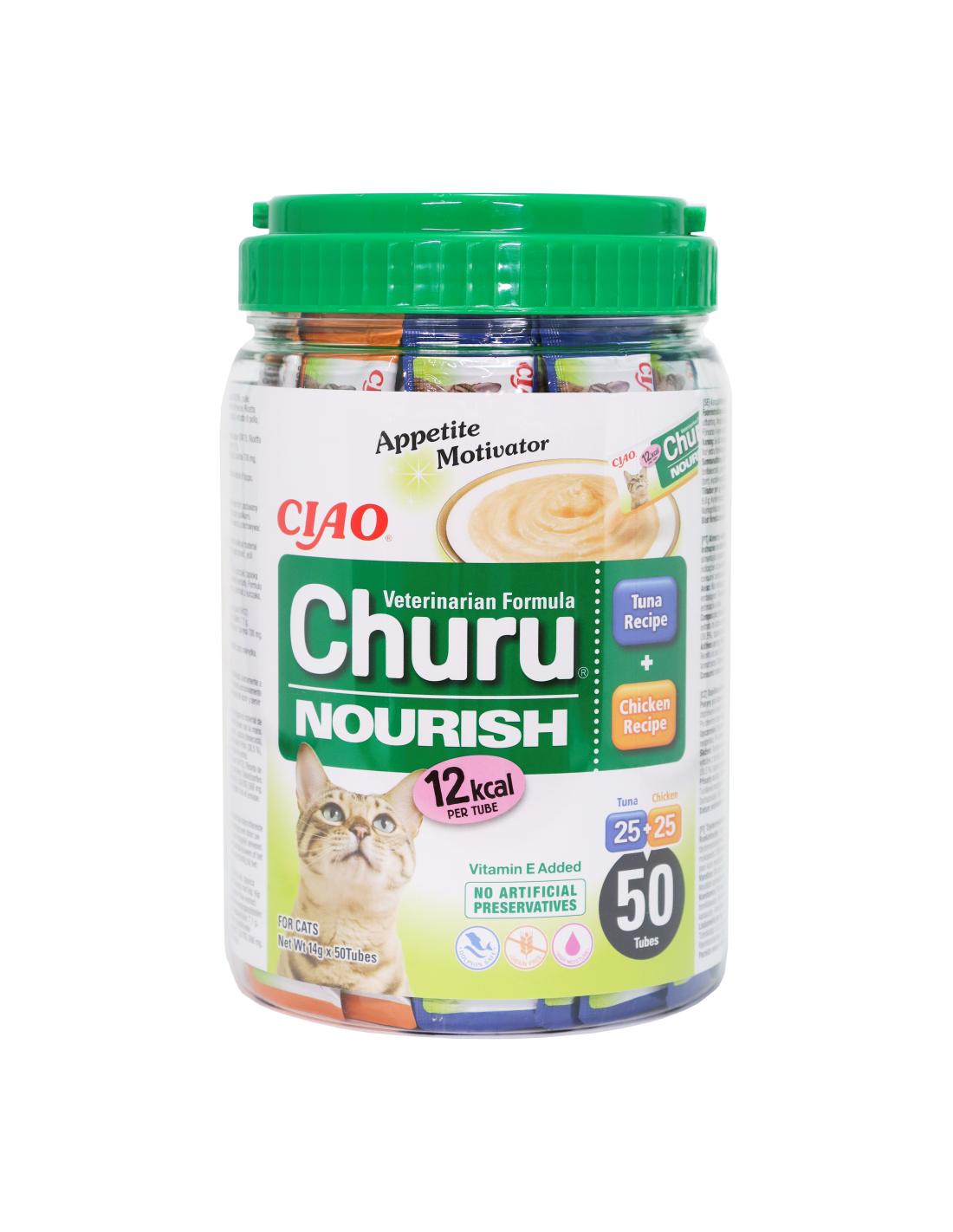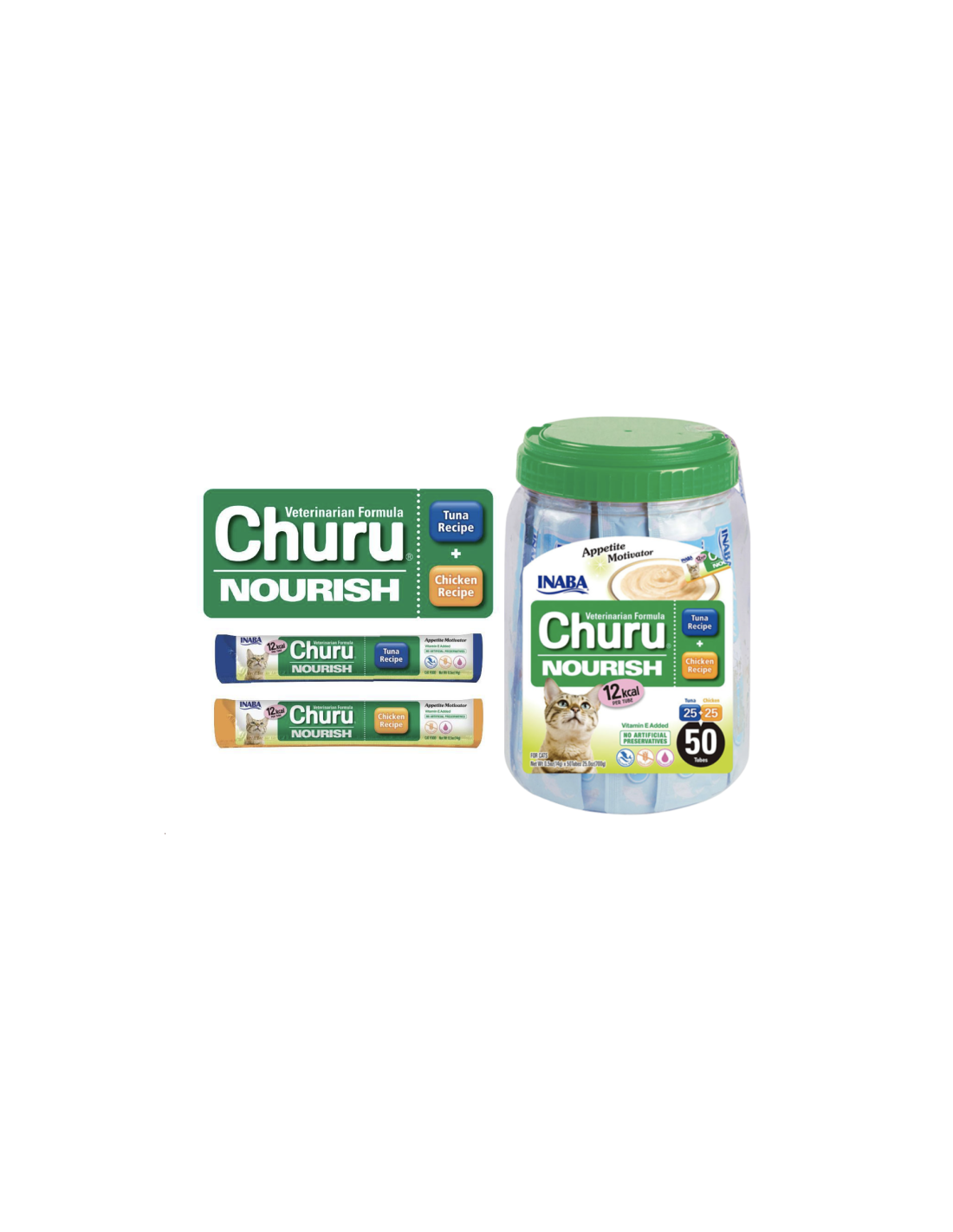 Churu Nourish on saadaval 50 tk purgis, mis sisaldab 25 kana- ja 25 tuunikalalõhna.