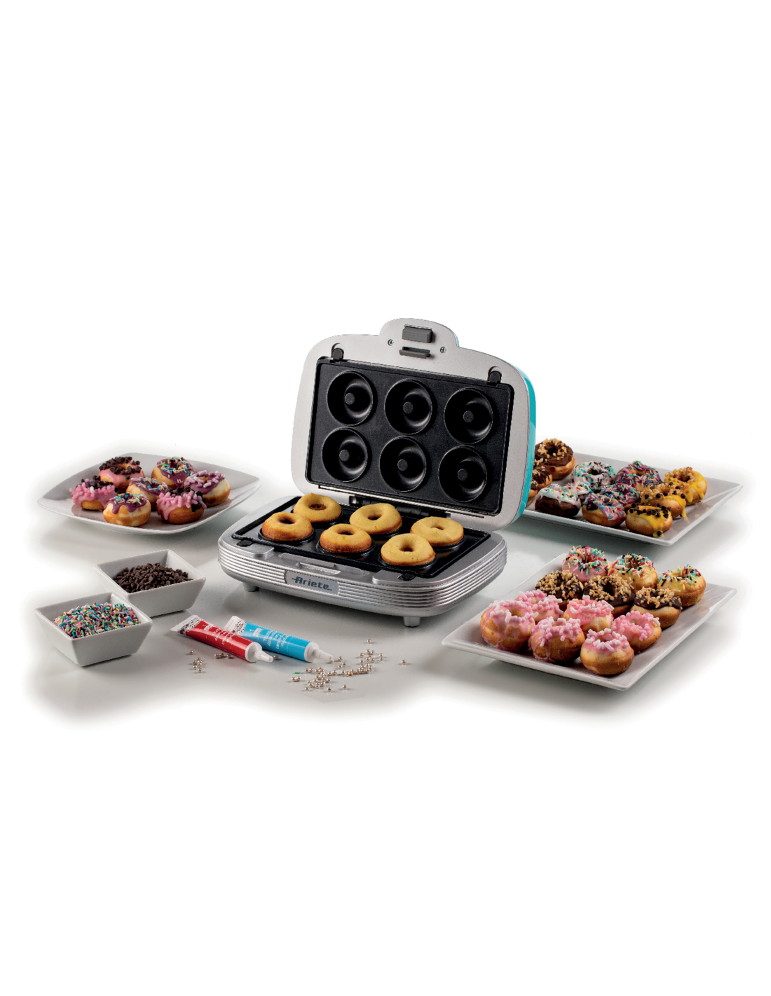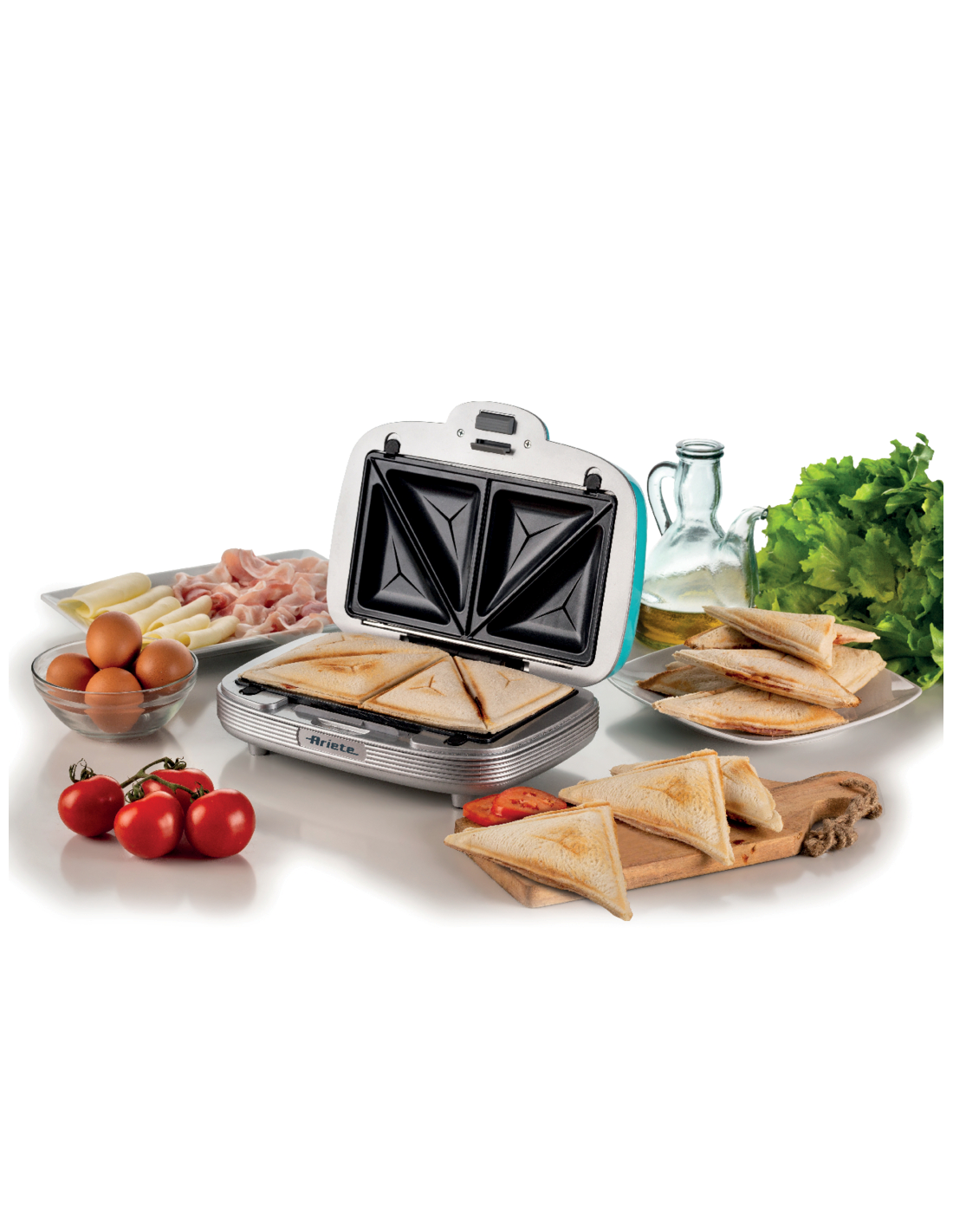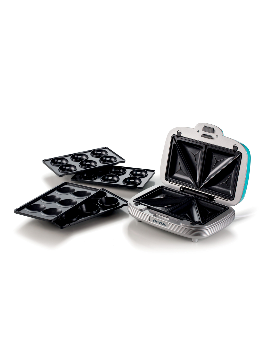 Multifunktsionaalne küpseti muffinide, sõõrikute ja võileibade valmistamiseks, unikaalse 50ndate Ameerika söögikoha disainiga. Ideaalne nii magusate kui ka soolaste suupistete lõbusaks valmistamiseks. Let’s party koos Party Time Arietega! Peo, vahepala või erilise päeva jaoks – saad valmistada rikkaliku laua head-paremat täis! Maitsvad muffinid, vastupandamatud sõõrikud ja täidetud võileivad. Üks lihtne ja kiire toode, millel on 3 mittenakkuvat, eemaldatavat ja vahetatavat plaati. Lõbutse köögis ja valmista palju maitsvat!