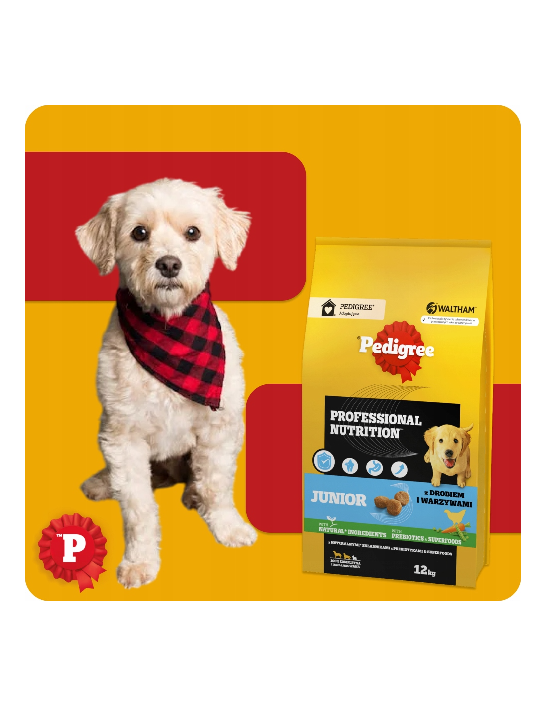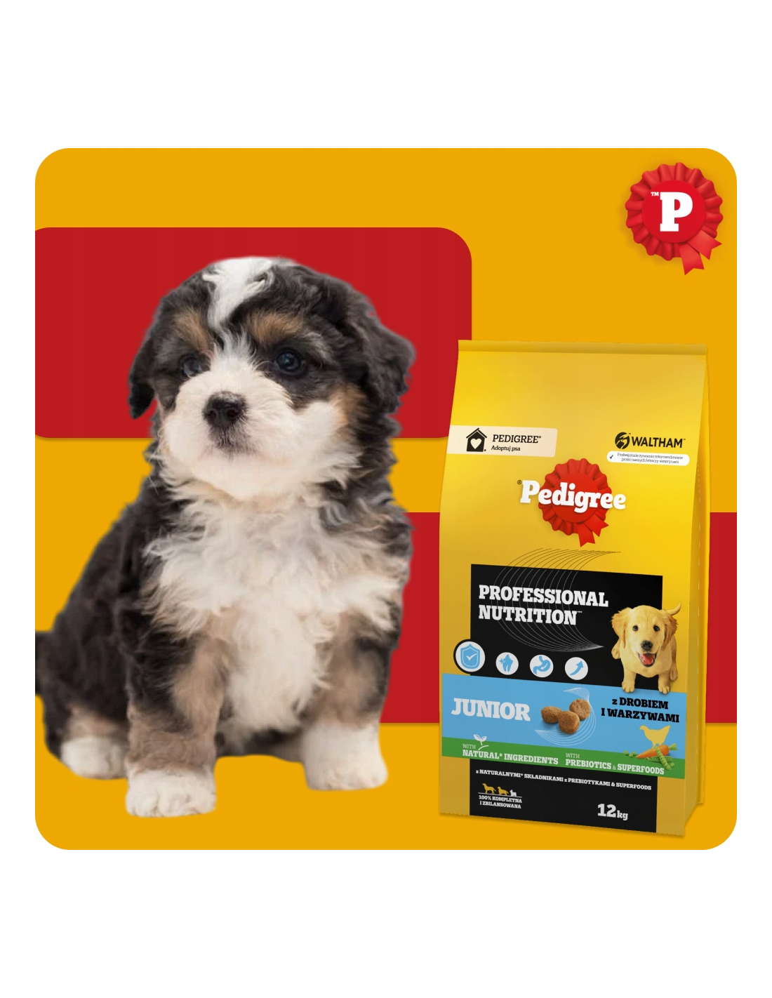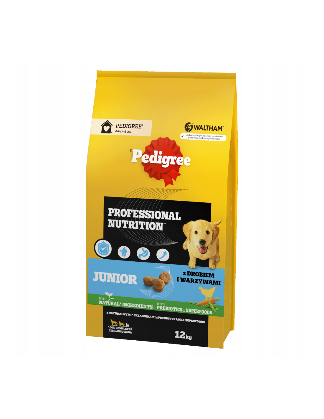 PEDIGREE® Junior Professional Nutrition kuivtoit linnuliha ja köögiviljadega on täisväärtuslik toit, mis sisaldab kõiki vajalikke koostisosi – sealhulgas mineraale ja vitamiine – terveks arenguks. See on mõeldud kasvavatele suurtele ja keskmise tõu kutsikatele. Professional Nutrition sari toetab tugevaid lihaseid, terveid luid, vitaalsust ja energiat kogu päeva vältel. Retsept on välja töötatud WALTHAM™ loomateaduse instituudi veterinaaride ja toitumisspetsialistide poolt ning sisaldab prebiootikume ja supertoite: porgandit, mis on A-vitamiini ja beetakaroteeni allikas, ning herneid, mis on kiudainete ja mineraalide allikas.