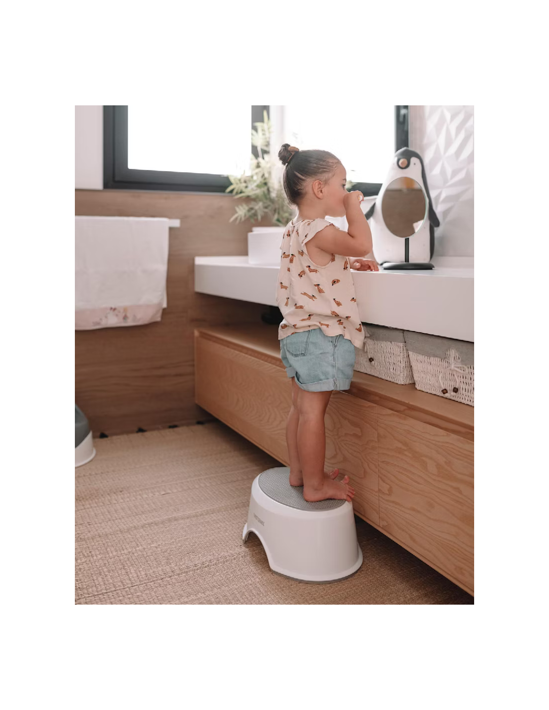 Tugev ja turvaline vannitoa jalapink, mis on disainitud libisemiskindlate pindadega – ideaalne abivahend, et aidata sinu pisikesel igapäevastes toimetustes uusi kõrgusi vallutada.