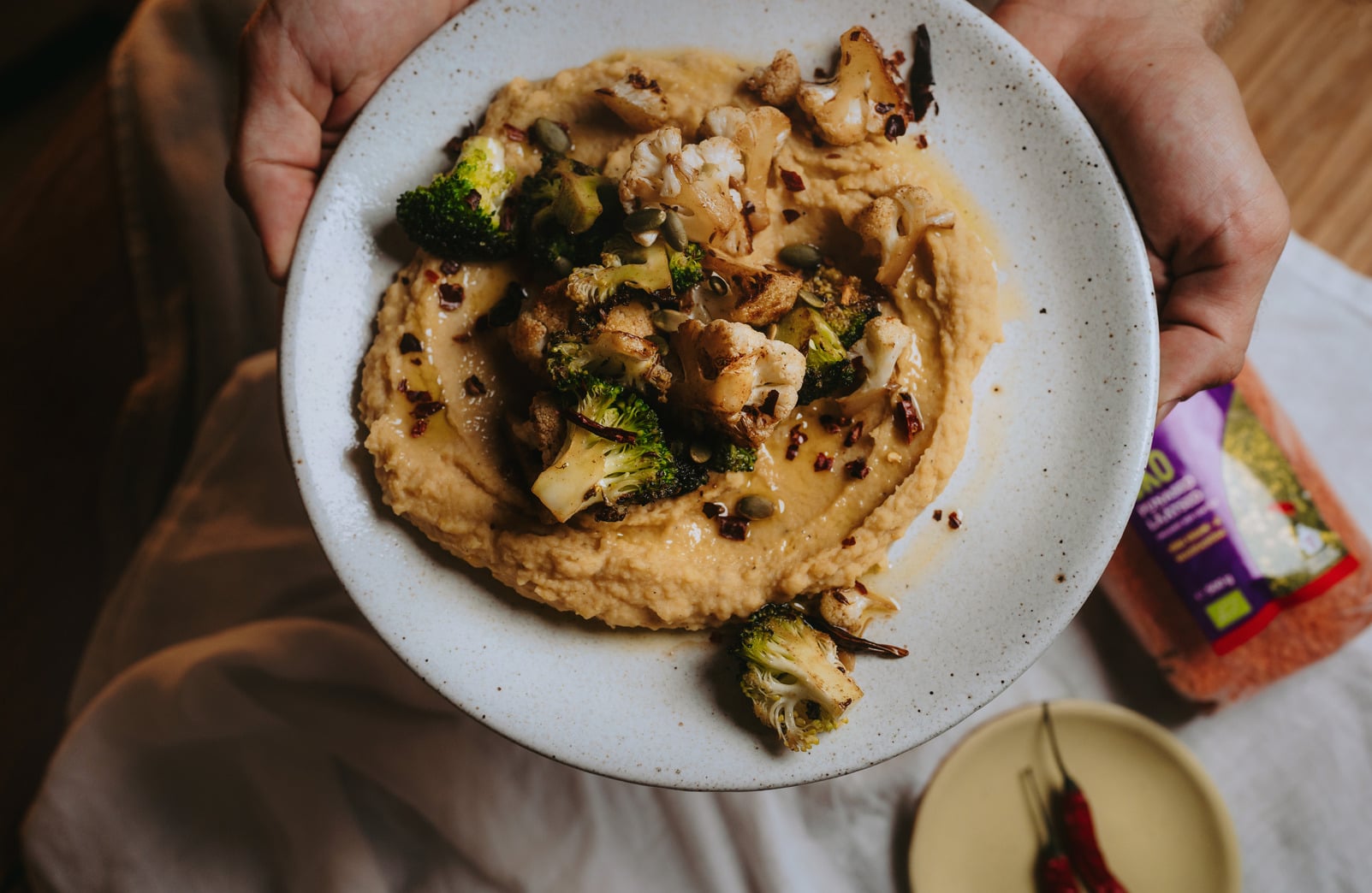Siidine läätsepüree pruunistatud brokkoli ja lillkapsaga on tervislik, valgurikas ja valmib vähem kui 30 minutiga.