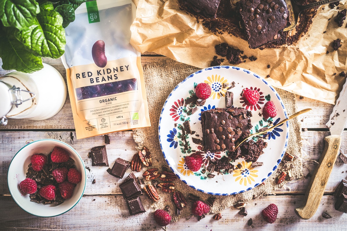 Lisa vahustatud munadele püreestatud oad, sulatatud šokolaad, küpsetuspulber, kakaopulber, õli ja vanilliekstrakt ning sega.