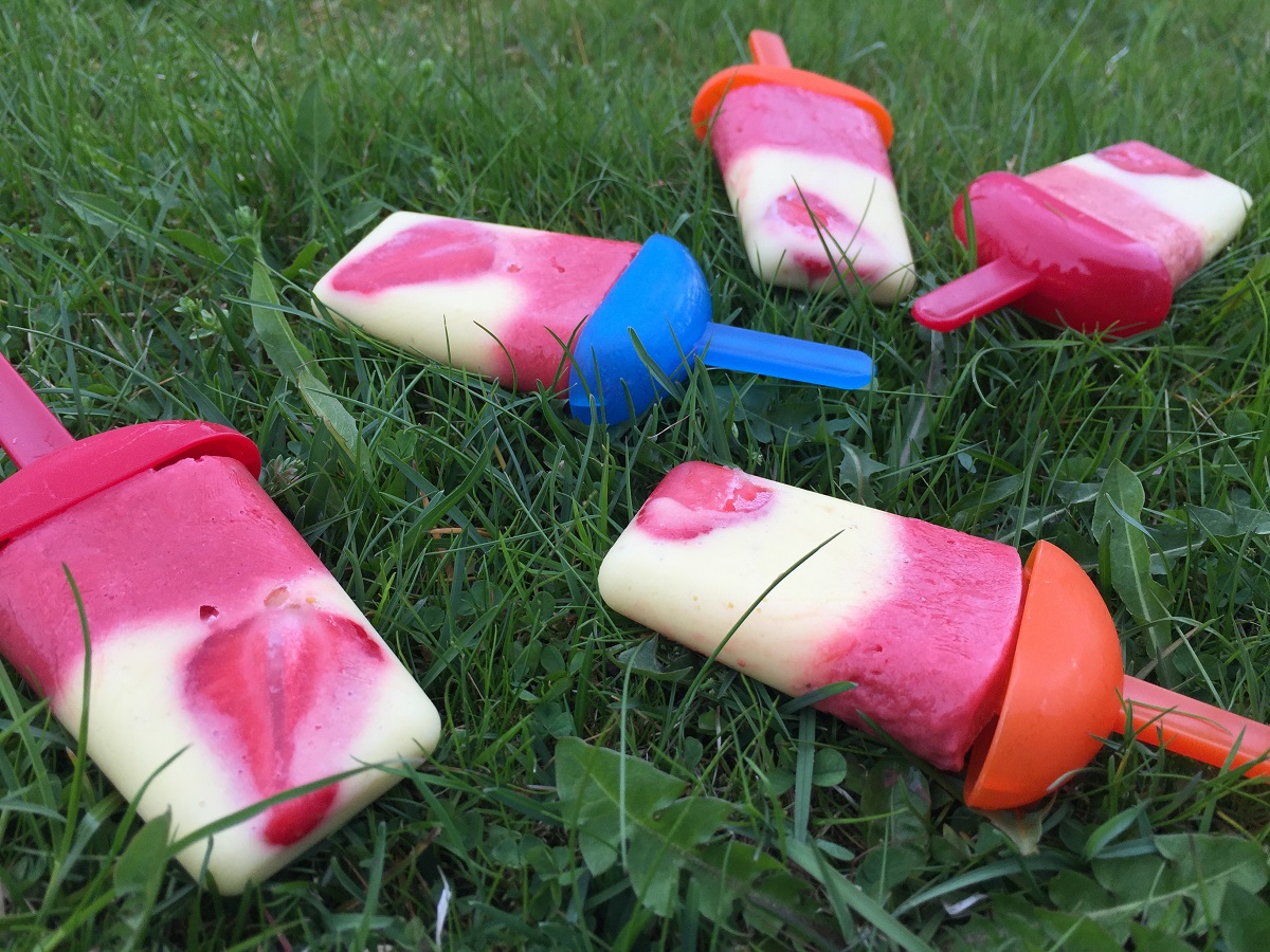 Lisa pool kogusest esimese kihina vormidesse. Ülejäänud segule lisa maasikad ja blenderda kreemjaks ning lisa segu viimase kihina jäätisevormidesse.