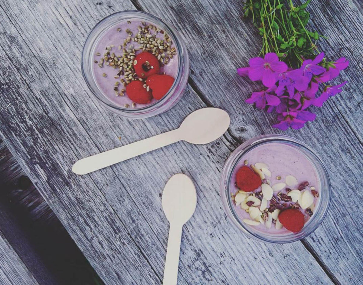 Jaga portsjon neljaks ja kaunista näiteks krõmpsuvate kanepiseemnete, kakaonibside, mandlilaastude või marjadega.