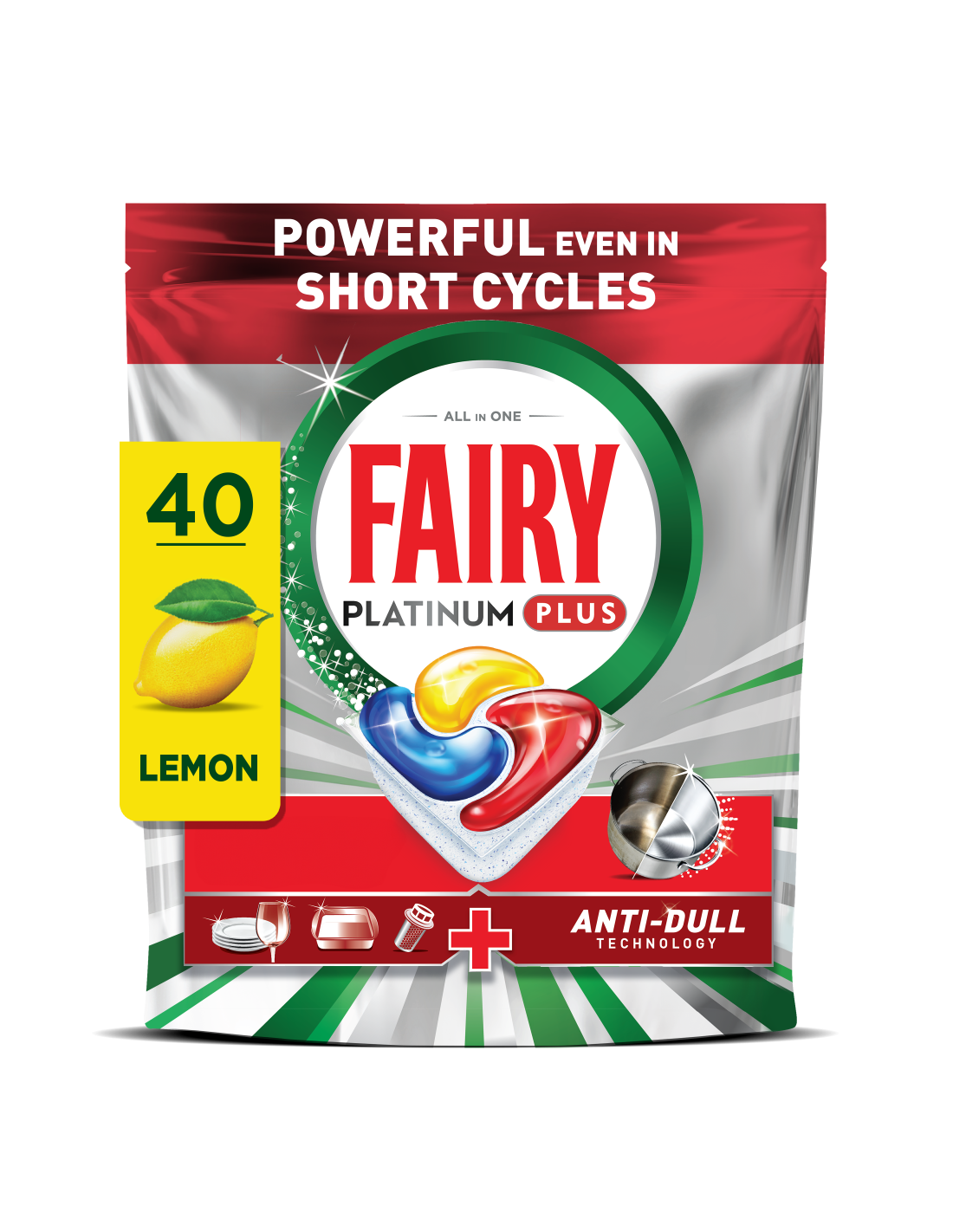 Fairy Platinum Plus All in One’i nõudepesumasina tablettide kasutamise järel näevad nõud välja nagu uued, tabletid tagavad sulle Fairy parima puhastustulemuse ja aitavad nõudelt kõrvaldada isegi aja jooksul tekkinud tuhmi tooni ja taastada nende esialgse sära. Fairy Platinum Plus tagab suurepärase puhastuse, eemaldades raskesti eemaldatavad toidujäätmete isegi lühikese pesutsükli korral ja kõrge kasutusintensiivsuse tingimustes. Seega, kui aega napib, siis ei ole see probleem. Lülita sisse lühike tsükkel. Fairy ühendab vedeliku ja pulbri üheks võimsaks kapsliks. Selle ülilahustuv kott lahustub kiiresti ja toimib hästi lühikeste pesutsüklite korral, kuna see hakkab töö lõpuleviimiseks kiirelt puhastama. Ja neid on nii lihtne kasutada! Lahtipakkimine pole vajalik, pane need lihtsalt nõudepesumasina pesuaine dosaatorisse. Lülita sisse lühike tsükkel* ja säästa aega, energiat ja vett võrreldes tavalise normaaltsükliga!