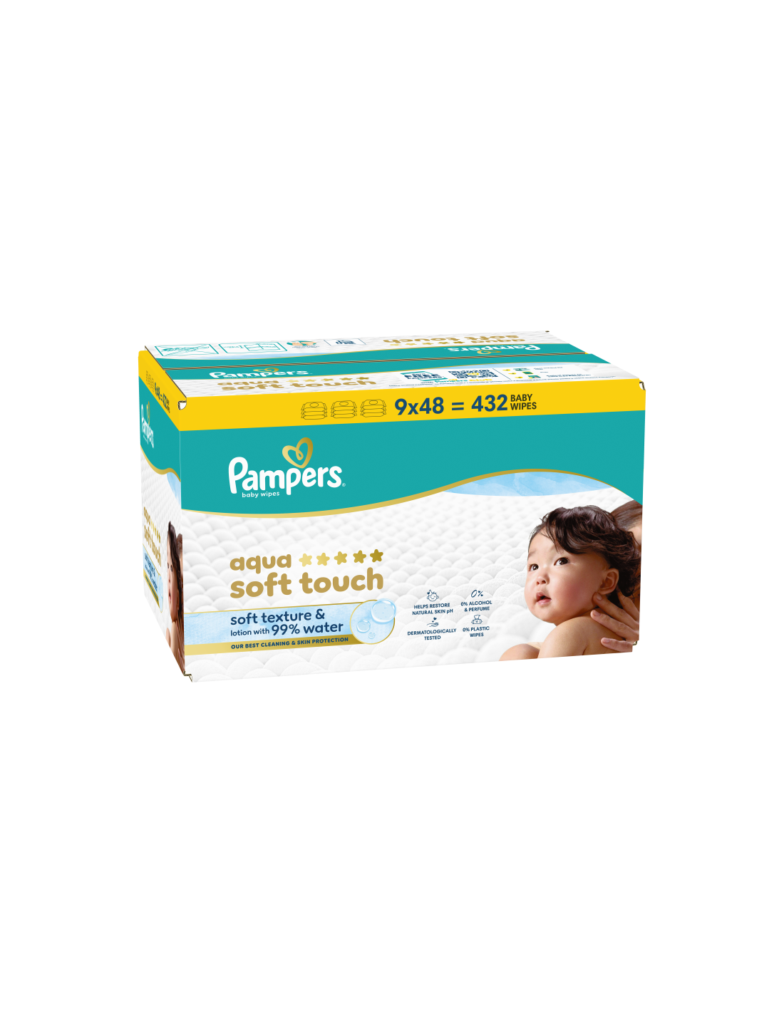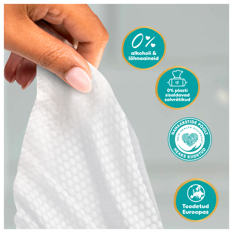Pampers Aqua Soft Touch Beebi Niisked salvrätid – Pampersi parim puhastus ja naha kaitse. Pehme tekstuuri ja 99% veesisaldusega ihupiimaga Pampersi niisked salvrätid puhastavad õrnalt ja aitavad kaitsta sinu beebi õrna nahka. Tänu Pampersi spetsiaalsele koostisele aitab see taastada naha loomulikku pH-d ja kaitseb punetuse eest. Need on valmistatud 0% alkoholi ja parfüümiga. Koostis on dermatoloogiliselt testitud. See on saanud Skin Health Alliance’i dermatoloogide heakskiidu.