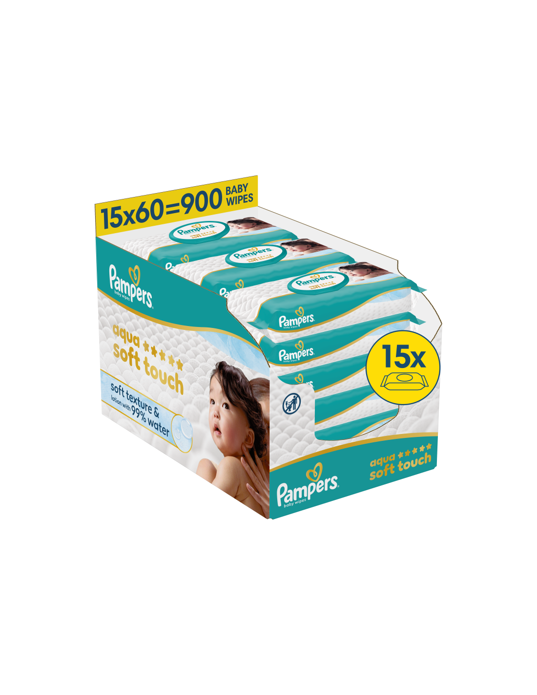 Pampers Aqua Soft Touch niisked beebisalvrätid 15 pakki (900 tk)