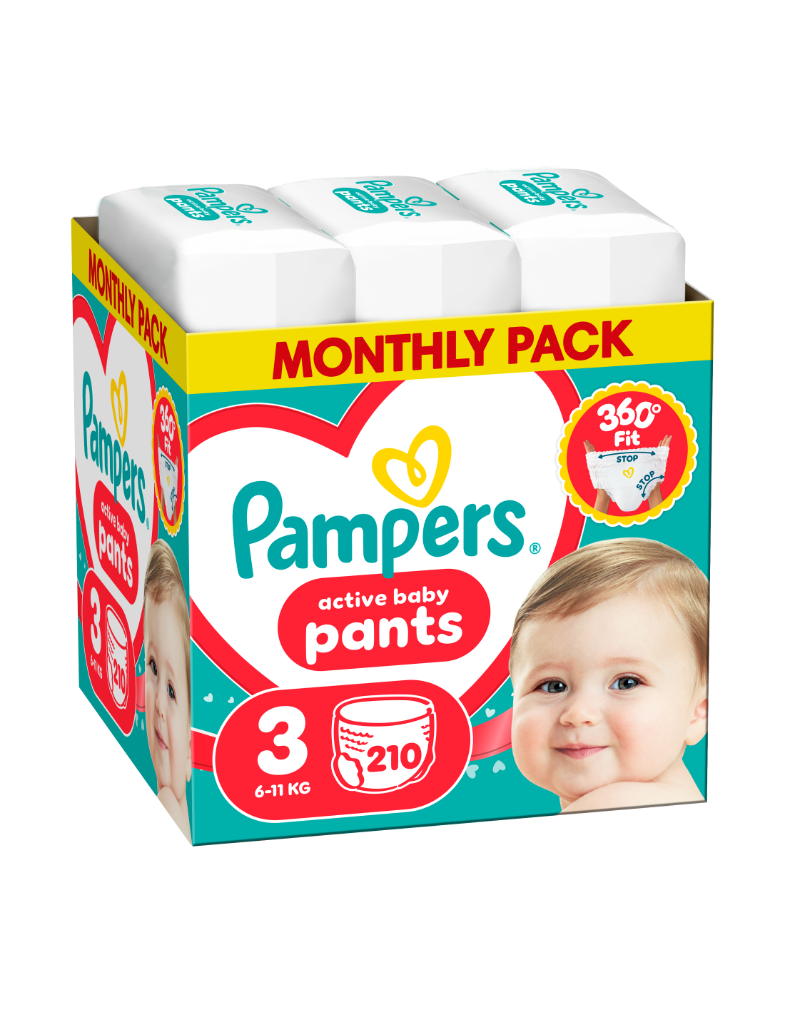 Kui beebi muutub aktiivsemaks, vajad iga liigutuse puhul mugavalt istuvat mähet, mis pakub ka usaldusväärset kaitset. Tänu revolutsioonilisele süsteemile Stop & Protect pakuvad Pampers Active Baby püksmähkmed parimat 360° ulatuses lekkekindlat istuvust nii päeval kui ka öösel! Pampers Active Baby püksmähkmete süsteem Stop & Protect hõlmab järgmist: lekkekindlad äärised külgedel, tasku, mis aitab vältida lekkeid tagaosas, 360° ulatuses veniv vöökoht, mis järgib sinu lapse kehakuju, kui ta ringi liigub, ning üliimav sisekiht, mis pakub kuni 12-tunnist kaitset. Nagu teisigi Pampersi püksmähkmeid, on ka Pampers Active Baby püksmähkmeid lihtne vahetada isegi siis, kui beebi on väga liikuv: need tuleb jalgapanekuks ainult üles tõmmata, lihtsaks eemaldamiseks küljelt lahti rebida ning hõlpsaks äraviskamiseks kokku rullida ja teibiga kinnitada. Sulle on kõige tähtsam sinu beebi ohutus. Pampersile samuti: Pampers Active Baby püksmähkmed on dermatoloogiliselt testitud ja saanud Skin Health Alliance'i dermatoloogide heakskiidu. Kas soovid Pampersi kasutatavate koostisosade kohta rohkem teada saada? Külasta veebisaiti pampers.com.