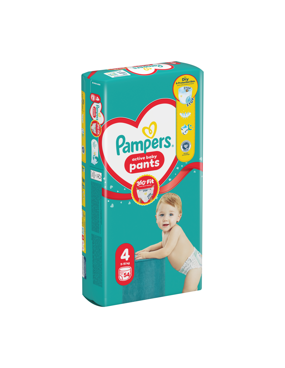 Kui beebi muutub aktiivsemaks, vajad iga liigutuse puhul mugavalt istuvat mähet, mis pakub ka usaldusväärset kaitset. Tänu revolutsioonilisele süsteemile Stop & Protect pakuvad Pampers Active Baby püksmähkmed parimat 360° ulatuses lekkekindlat istuvust nii päeval kui ka öösel! Pampers Active Baby püksmähkmete süsteem Stop & Protect hõlmab järgmist: lekkekindlad äärised külgedel, tasku, mis aitab vältida lekkeid tagaosas, 360° ulatuses veniv vöökoht, mis järgib sinu lapse kehakuju, kui ta ringi liigub, ning üliimav sisekiht, mis pakub kuni 12-tunnist kaitset. Nagu teisigi Pampersi püksmähkmeid, on ka Pampers Active Baby püksmähkmeid lihtne vahetada isegi siis, kui beebi on väga liikuv: need tuleb jalgapanekuks ainult üles tõmmata, lihtsaks eemaldamiseks küljelt lahti rebida ning hõlpsaks äraviskamiseks kokku rullida ja teibiga kinnitada. Sulle on kõige tähtsam sinu beebi ohutus. Pampersile samuti: Pampers Active Baby püksmähkmed on dermatoloogiliselt testitud ja saanud Skin Health Alliance'i dermatoloogide heakskiidu. Kas soovid Pampersi kasutatavate koostisosade kohta rohkem teada saada? Külasta veebisaiti pampers.com.