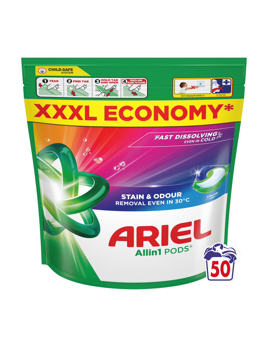 Whirlpooli, Electroluxi, Candy ja Beko soovitatud kaubamärk Ariel esitleb Arieli Allin1 PODS pesutablettides pesupesemisvahendit Color, mis eemaldab raskestieemaldatavad plekid ja ebameeldivad lõhnad isegi 30°C juures. Need on loodud toimima suurepäraselt ka külmemates tsüklites, lahustuvad kiiresti isegi külmas vees ja tagavad laitmatud tulemused. HOIATUS: toode võib olla kahjulik ja põhjustada raske vigastuse. Ariel Allin1 PODS pesukapslites pesuvahendit tuleb alati hoida lastele kättesaamatus kohas. Lisateavet leiad aadressilt keepcapsfromkids.eu.