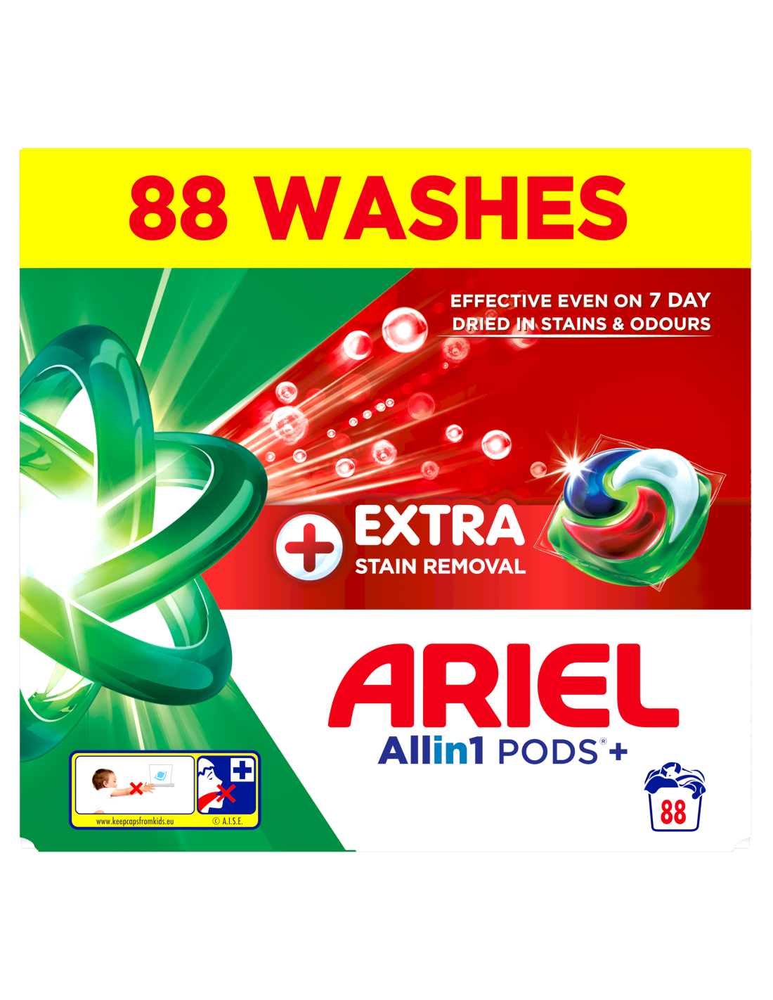 Whirlpooli, Electroluxi, Candy ja Beko poolt soovitatud kaubamärk Ariel esitleb Arieli Allin1 PODS+ pesukapslites pesuvahendit + Täiendav Plekke Eemaldav Toime, Arieli kõigi aegade parimaid Allin1 PODS+ pesukapsleid! Tänu lisatud punasele kambrile toimivad need külmas vees isegi 7 päeva sissekuivanud plekkide korral. Need on loodud toimima suurepäraselt ka külmemates tsüklites, lahustuvad kiiresti isegi külmas vees ja tagavad laitmatud tulemused. Parimate tulemuste saavutamiseks pane kapslid esmalt tühja trumli tagaossa ja aseta riided peale. HOIATUS: toode võib olla kahjulik ja põhjustada raske vigastuse. Ariel Allin1 PODS pesukapslites pesuvahendit tuleb alati hoida lastele kättesaamatus kohas. Lisateavet leiad aadressilt keepcapsfromkids.eu.