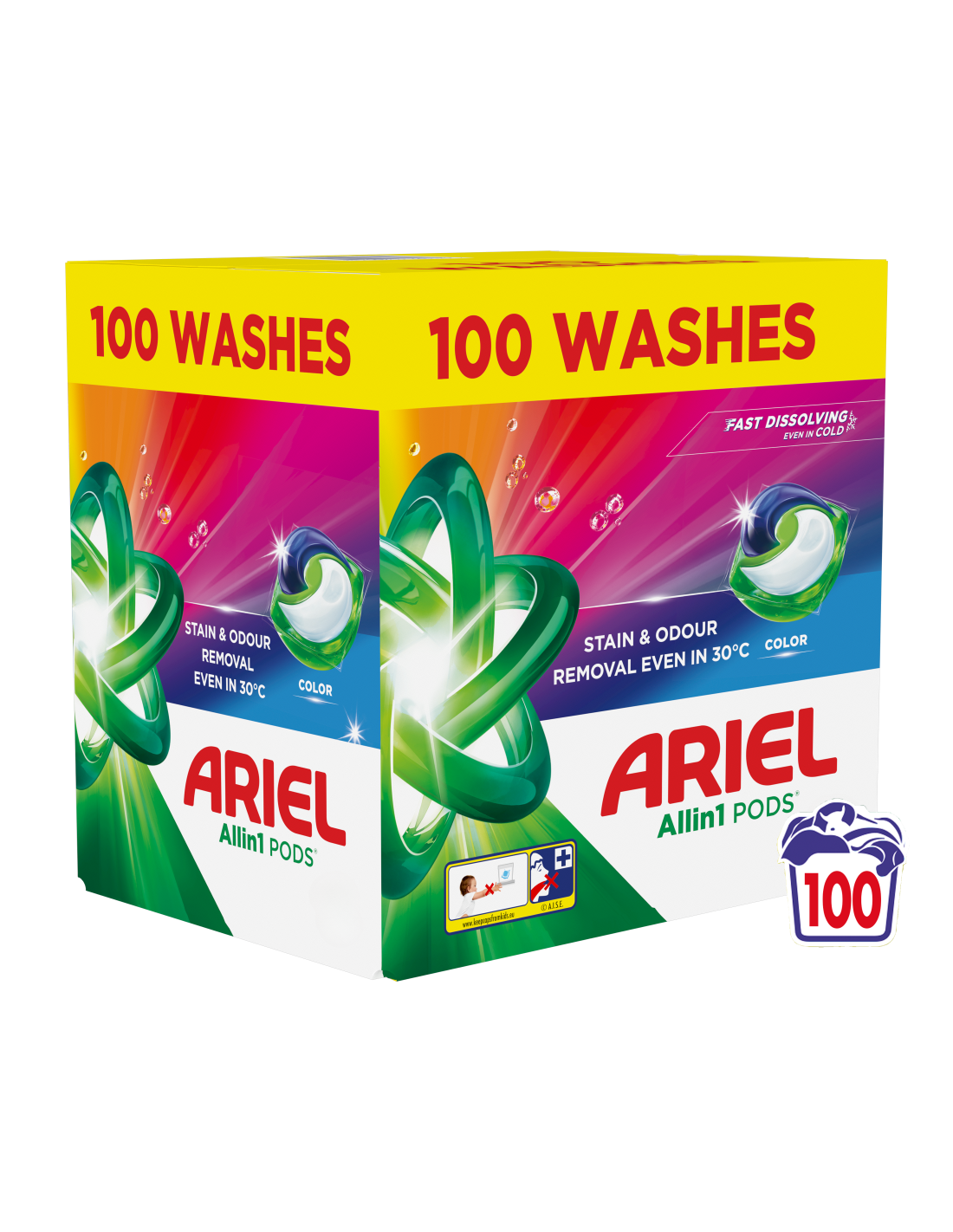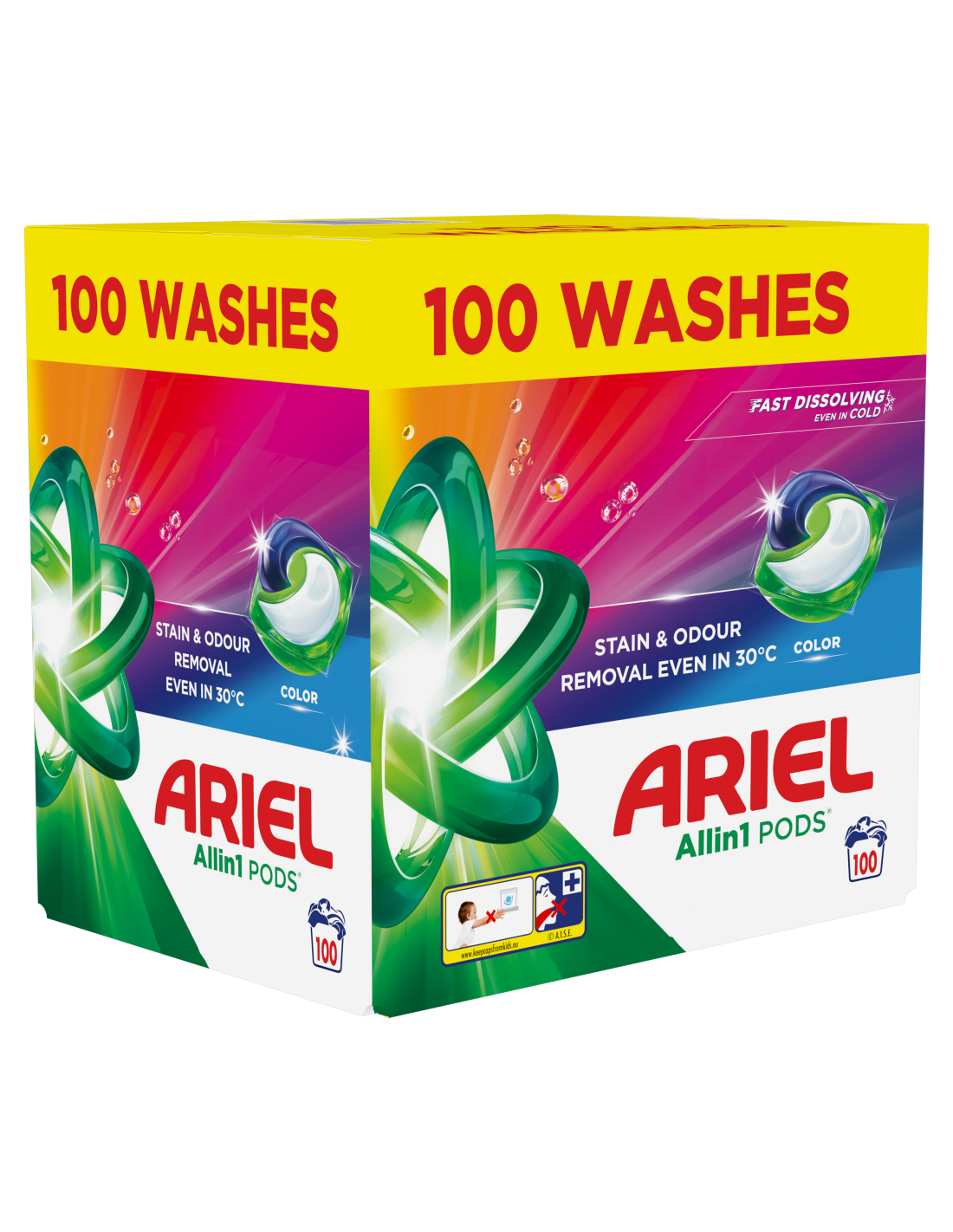 Whirlpooli, Electroluxi, Candy ja Beko soovitatud kaubamärk Ariel esitleb Arieli Allin1 PODS pesutablettides pesupesemisvahendit Color, mis eemaldab raskestieemaldatavad plekid ja ebameeldivad lõhnad isegi 30°C juures. Need on loodud toimima suurepäraselt ka külmemates tsüklites, lahustuvad kiiresti isegi külmas vees ja tagavad laitmatud tulemused. HOIATUS: toode võib olla kahjulik ja põhjustada raske vigastuse. Ariel Allin1 PODS pesukapslites pesuvahendit tuleb alati hoida lastele kättesaamatus kohas. Lisateavet leiad aadressilt keepcapsfromkids.eu.