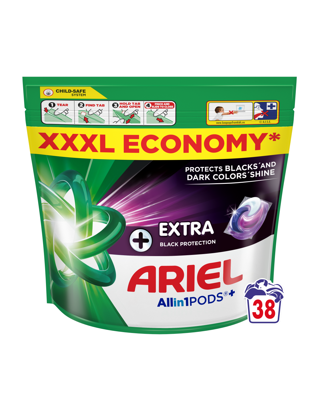 Whirlpooli, Electroluxi, Candy ja Beko poolt soovitatud kaubamärk Ariel esitleb Arieli Allin1 PODS+ pesukapslites pesuvahendit + TÄIENDAV MUSTA KAITSE! Tänu täiendavale lillale kambrile kaitsevad pesukapslid mustade ja tumedate värvide sära. Need on loodud toimima suurepäraselt ka külmemates tsüklites, lahustuvad kiiresti isegi külmas vees ja tagavad laitmatud tulemused. Parimate tulemuste saavutamiseks pane kapslid esmalt tühja trumli tagaossa ja aseta riided peale. HOIATUS: toode võib olla kahjulik ja põhjustada raske vigastuse. Ariel Allin1 PODS+ pesukapslites pesuvahendit tuleb alati hoida lastele kättesaamatus kohas. Lisateavet leiad aadressilt keepcapsfromkids.eu.
