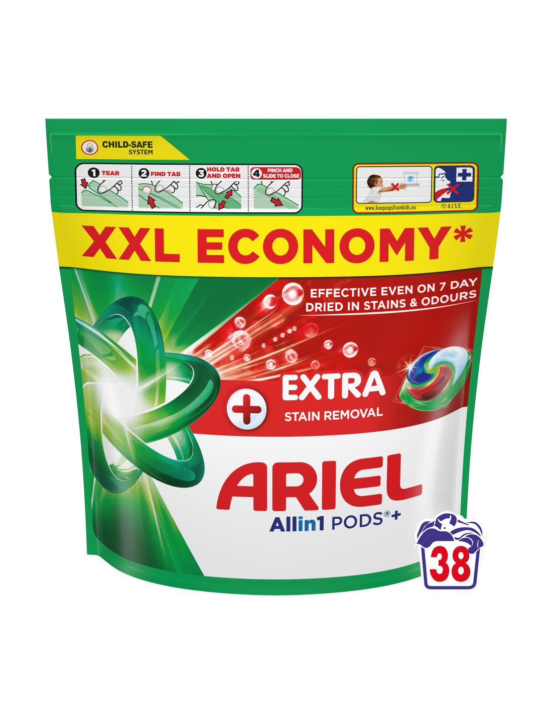 Whirlpooli, Electroluxi, Candy ja Beko poolt soovitatud kaubamärk Ariel esitleb Arieli Allin1 PODS+ pesukapslites pesuvahendit + Täiendav Plekke Eemaldav Toime, Arieli kõigi aegade parimaid Allin1 PODS+ pesukapsleid! Tänu lisatud punasele kambrile toimivad need külmas vees isegi 7 päeva sissekuivanud plekkide korral. Need on loodud toimima suurepäraselt ka külmemates tsüklites, lahustuvad kiiresti isegi külmas vees ja tagavad laitmatud tulemused. Parimate tulemuste saavutamiseks pane kapslid esmalt tühja trumli tagaossa ja aseta riided peale. HOIATUS: toode võib olla kahjulik ja põhjustada raske vigastuse. Ariel Allin1 PODS pesukapslites pesuvahendit tuleb alati hoida lastele kättesaamatus kohas. Lisateavet leiad aadressilt keepcapsfromkids.eu.