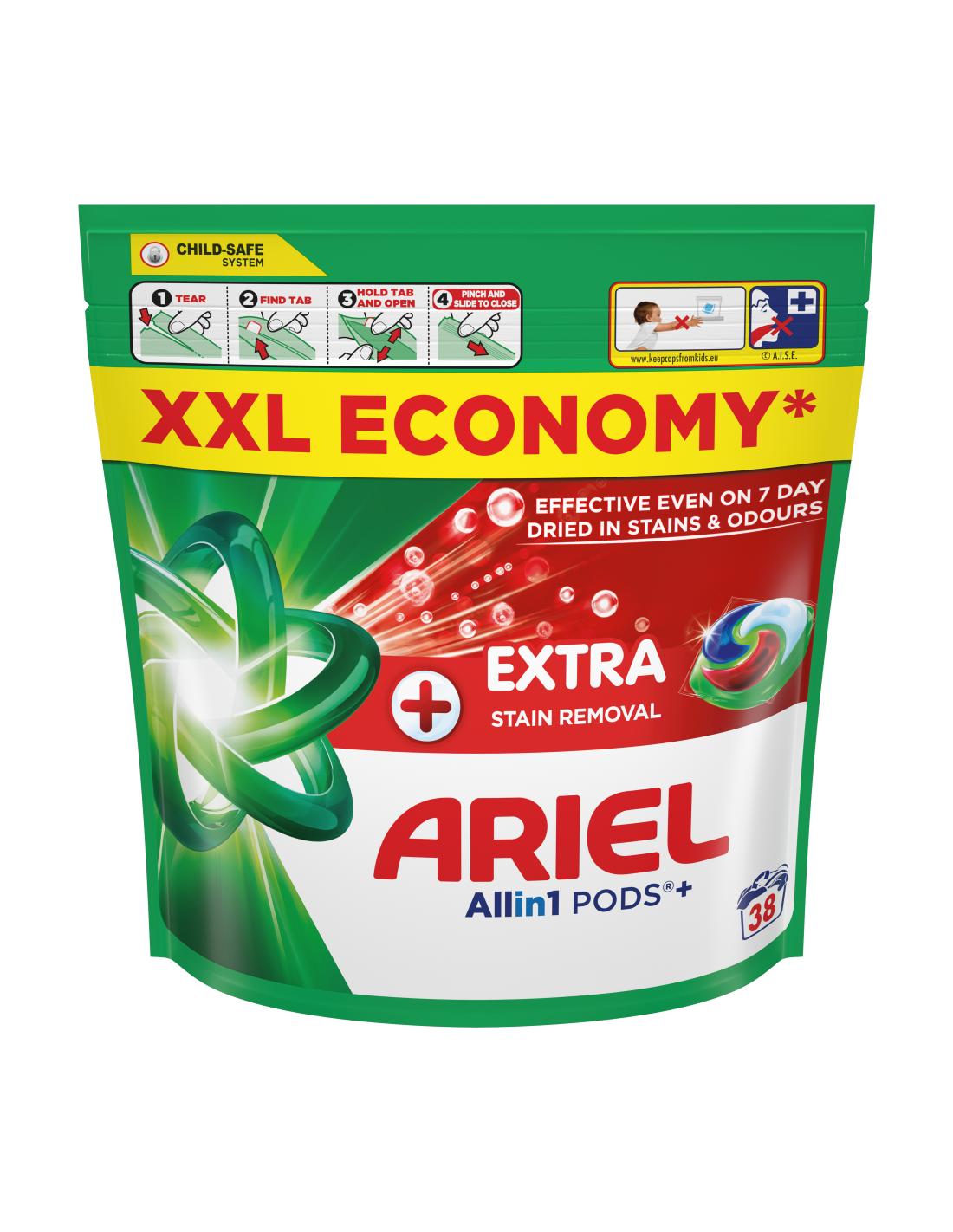 Whirlpooli, Electroluxi, Candy ja Beko poolt soovitatud kaubamärk Ariel esitleb Arieli Allin1 PODS+ pesukapslites pesuvahendit + Täiendav Plekke Eemaldav Toime, Arieli kõigi aegade parimaid Allin1 PODS+ pesukapsleid! Tänu lisatud punasele kambrile toimivad need külmas vees isegi 7 päeva sissekuivanud plekkide korral. Need on loodud toimima suurepäraselt ka külmemates tsüklites, lahustuvad kiiresti isegi külmas vees ja tagavad laitmatud tulemused. Parimate tulemuste saavutamiseks pane kapslid esmalt tühja trumli tagaossa ja aseta riided peale. HOIATUS: toode võib olla kahjulik ja põhjustada raske vigastuse. Ariel Allin1 PODS pesukapslites pesuvahendit tuleb alati hoida lastele kättesaamatus kohas. Lisateavet leiad aadressilt keepcapsfromkids.eu.