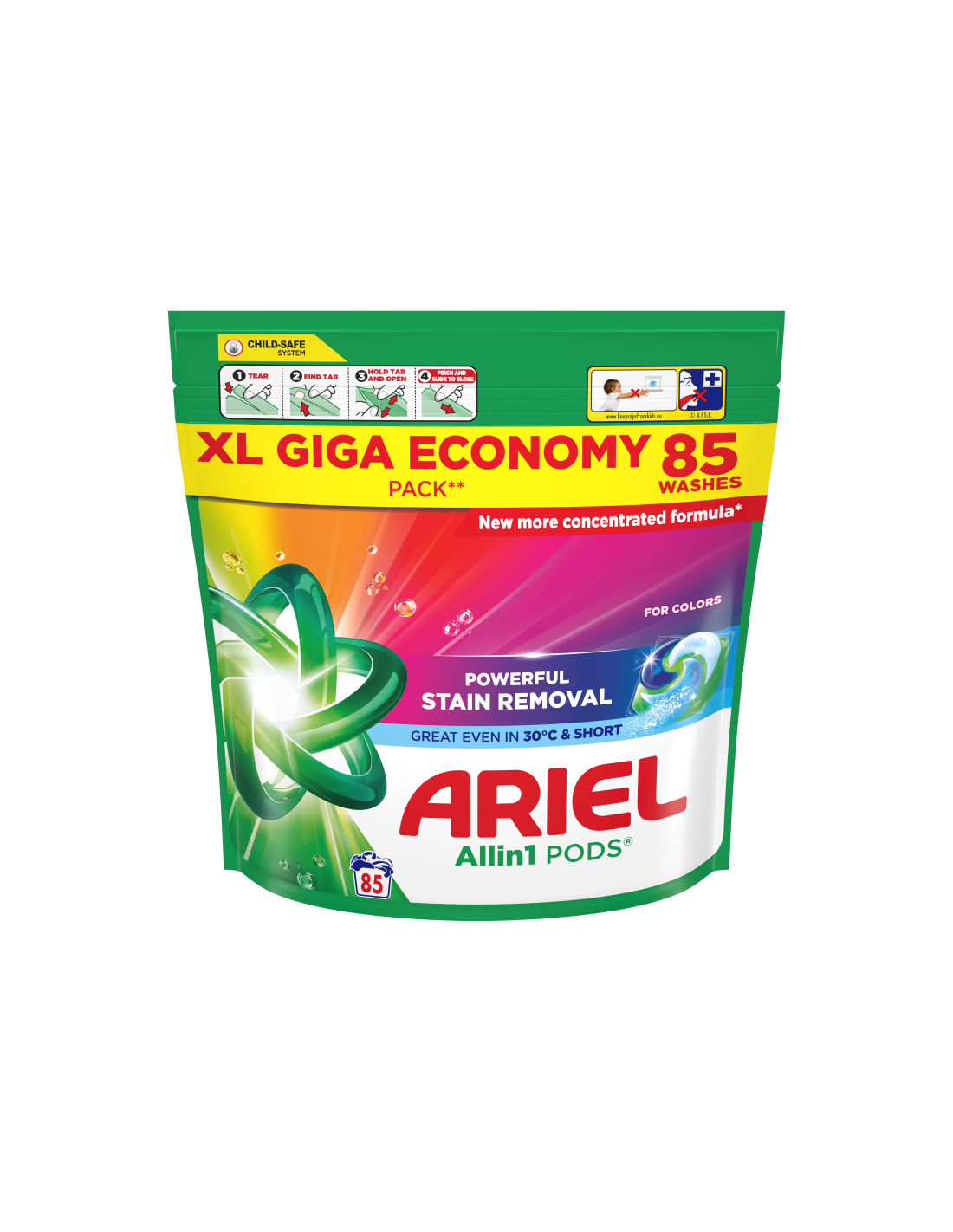 Whirlpooli, Electroluxi, Candy ja Beko soovitatud kaubamärk Ariel esitleb Arieli Allin1 PODS pesutablettides pesupesemisvahendit Color, mis eemaldab raskestieemaldatavad plekid ja ebameeldivad lõhnad isegi 30°C juures. Need on loodud toimima suurepäraselt ka külmemates tsüklites, lahustuvad kiiresti isegi külmas vees ja tagavad laitmatud tulemused. HOIATUS: toode võib olla kahjulik ja põhjustada raske vigastuse. Ariel Allin1 PODS pesukapslites pesuvahendit tuleb alati hoida lastele kättesaamatus kohas. Lisateavet leiad aadressilt keepcapsfromkids.eu.