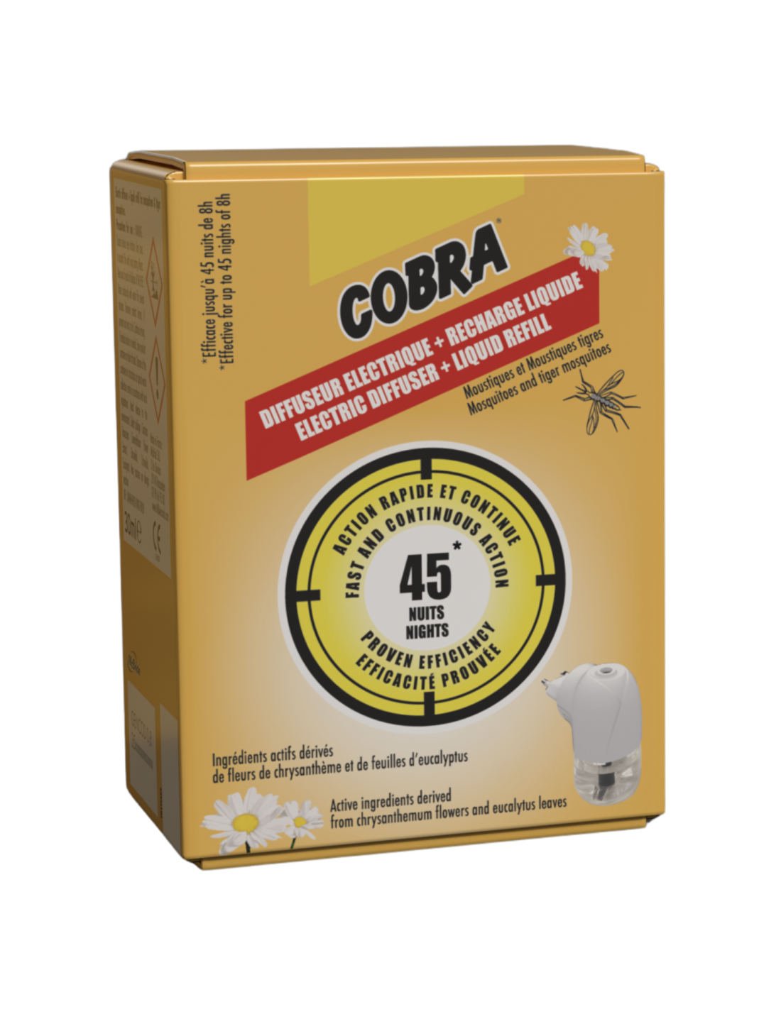 Kasutamine. Käitlemisel täita ohutusnõudeid! Sisaldab biotsiidi. Enne kasutamist tutvuda kasutusjuhendiga. Eemaldada kork ja keerata pudel seadmesse. Ühendada seade vertikaalselt vooluvõrku. Maksimaalse toime saavutamiseks teha seda 30 min. varem. Kui pudel on tühjenenud võtta aparaat pistikust välja ja lisada uus pudel. Mitte kasutada teisi täiteid peale Cobra.